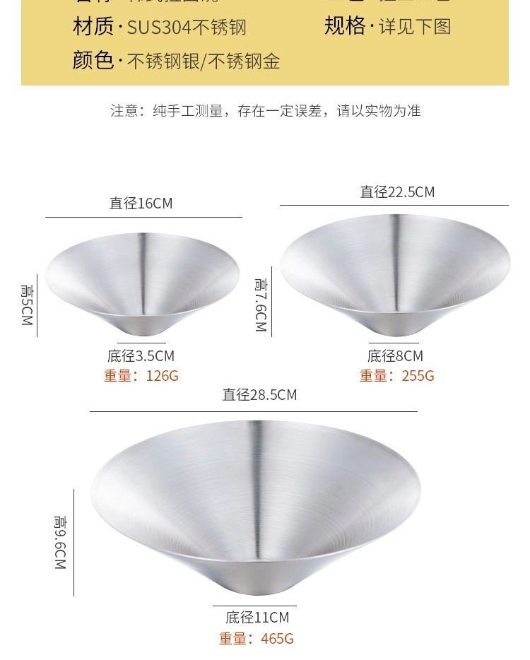 不锈钢韩式冷面碗304单层沙拉碗冷面碗 多用大碗拌饭碗韩国汤面碗