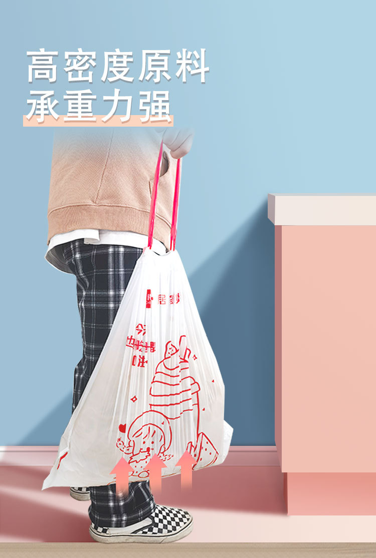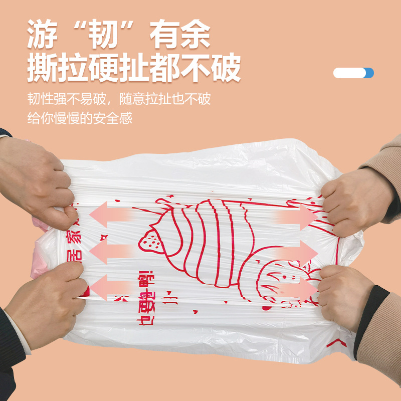 垃圾袋抽绳式家用手提加大加厚自动收口免撕卡通印花大卷塑料袋