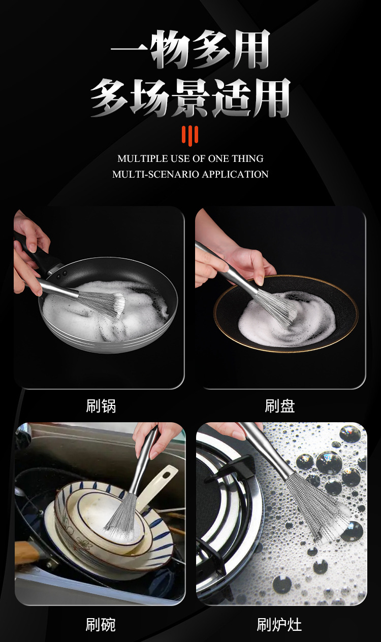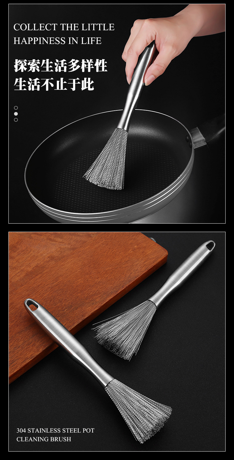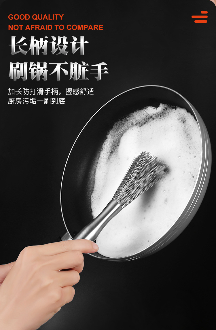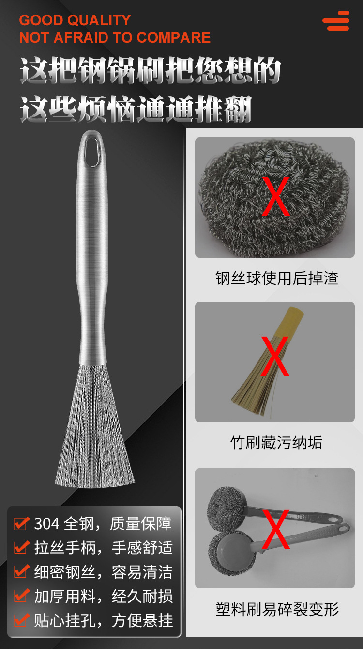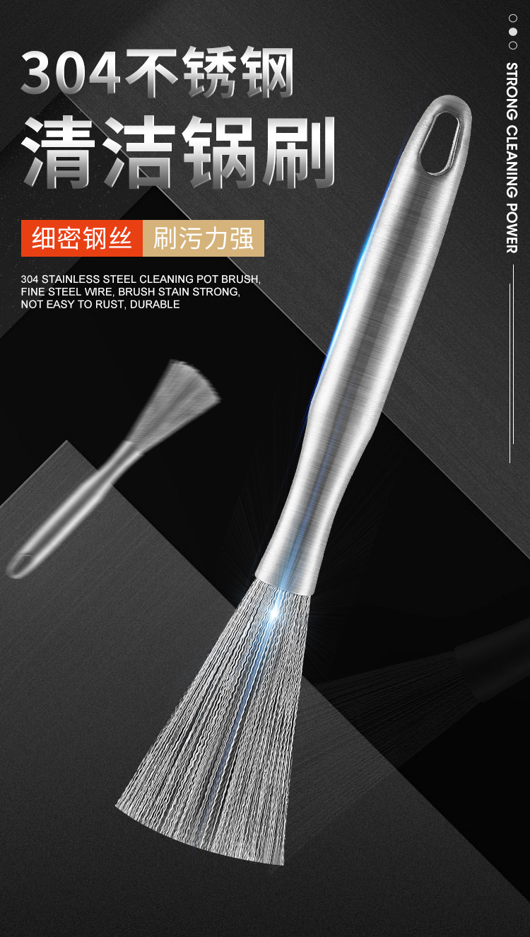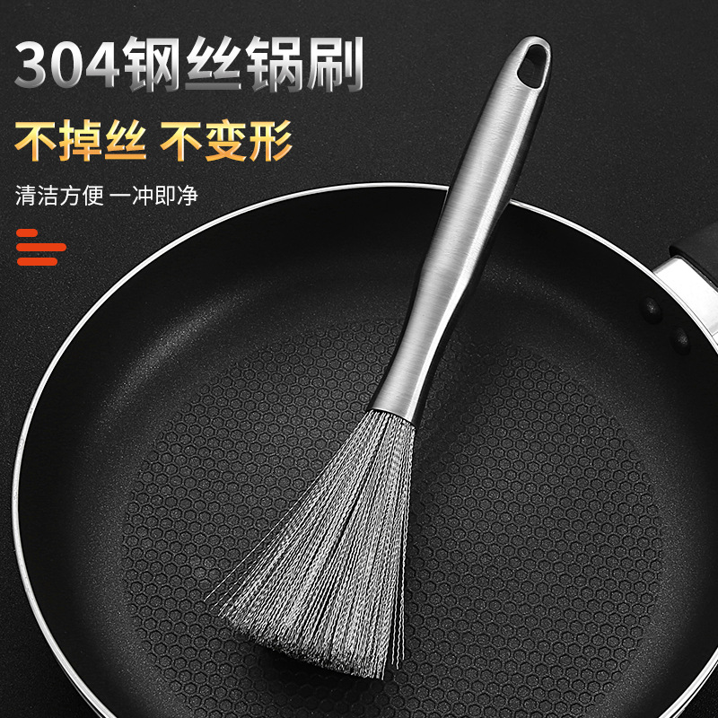 304不锈钢锅刷家用厨房长柄洗碗刷子可挂式铁锅去污清洁刷钢丝刷