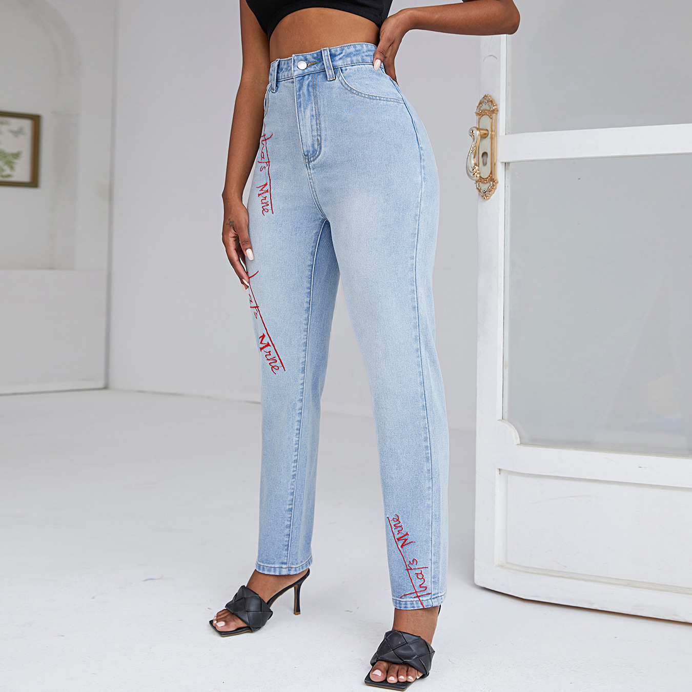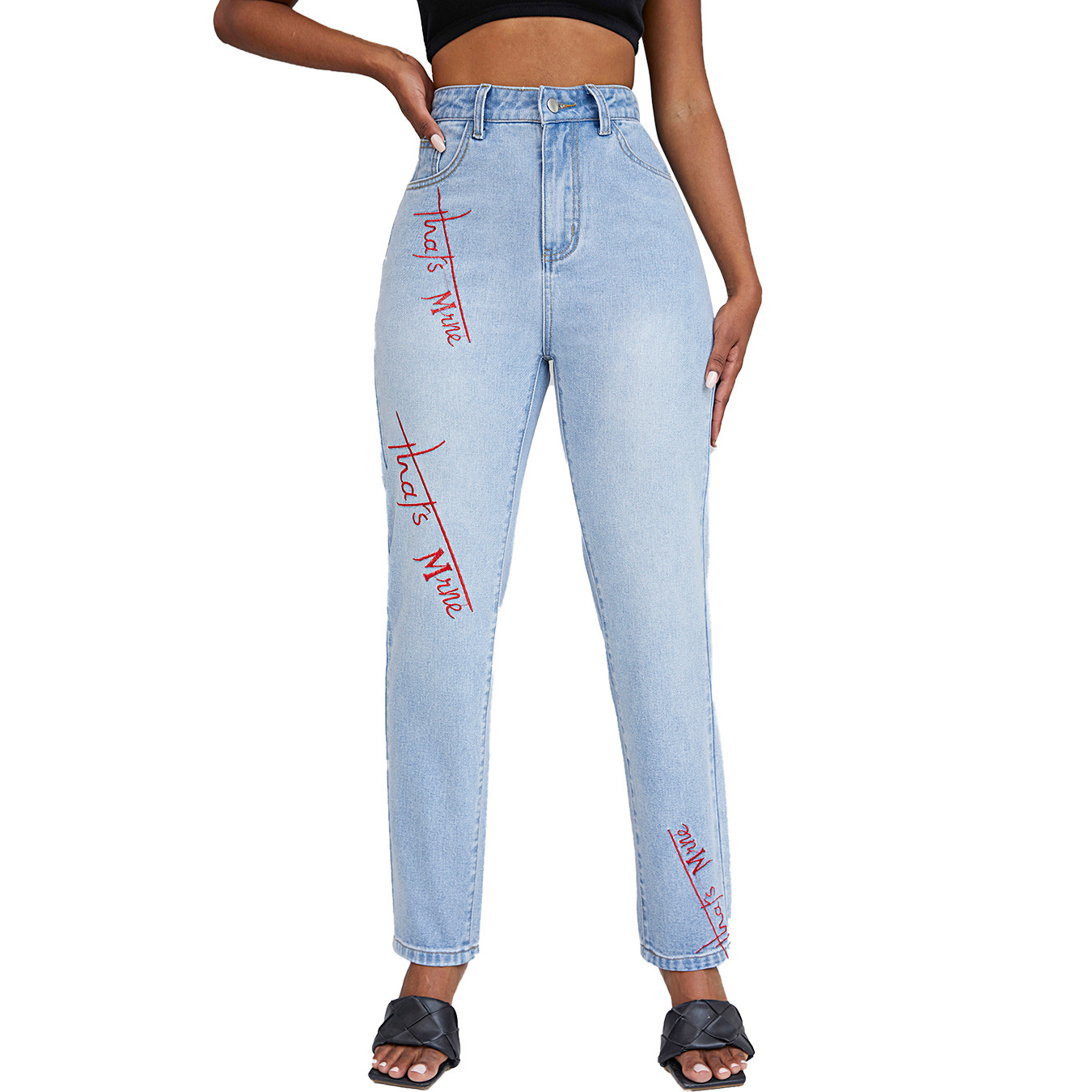 新款外贸跨境 欧美亚马逊eaby女装时尚个性涂鸦牛仔小脚裤