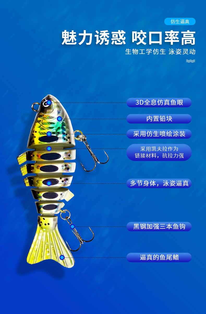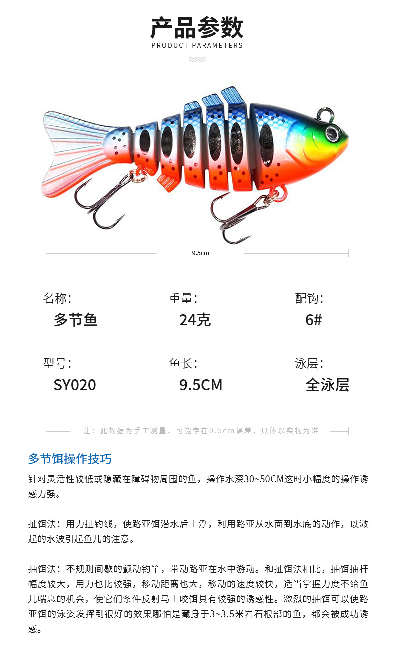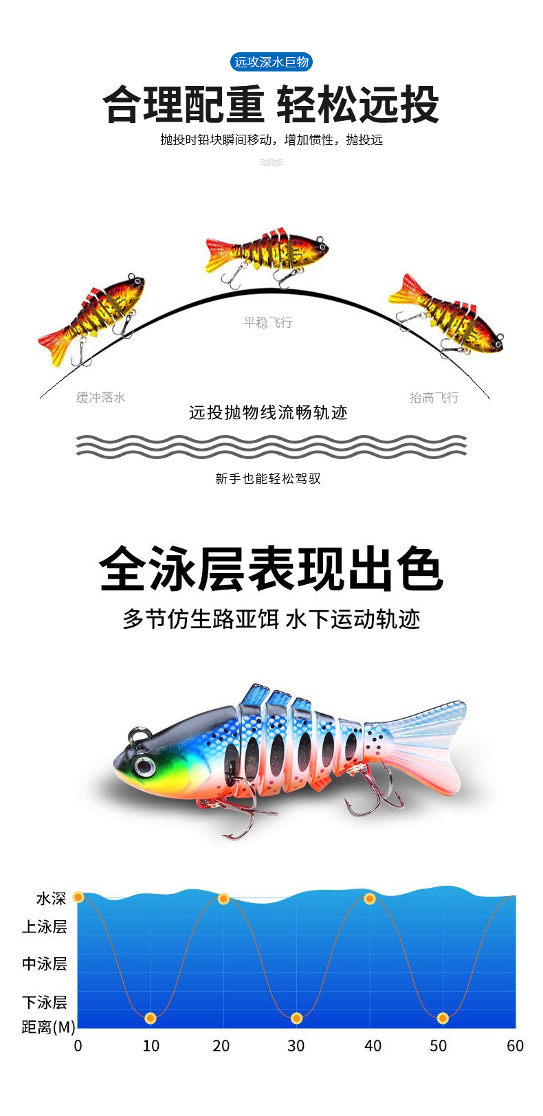 新款路亚饵多节鱼9.5厘米24克七节鱼超远投仿真海钓鱼饵假饵 硬饵
