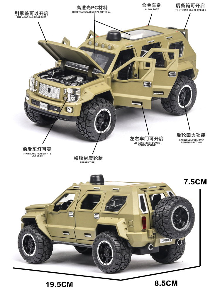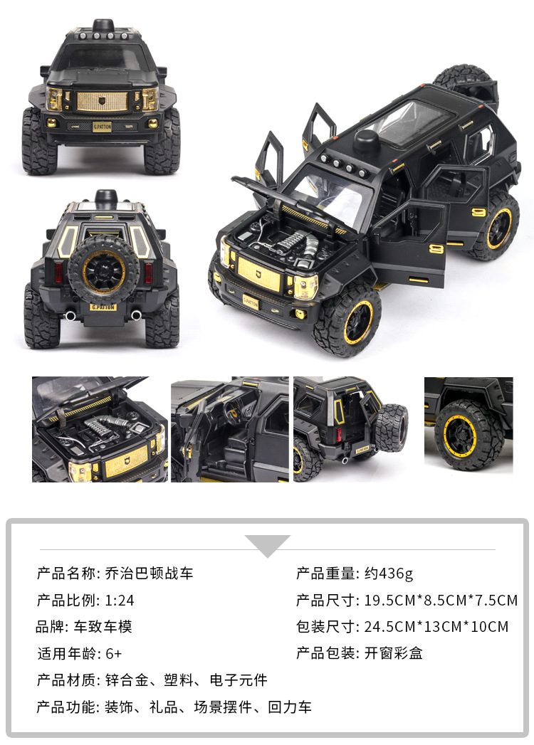 1:24乔治巴顿(盒装)儿童玩具带声光开门合金车模限量版礼物