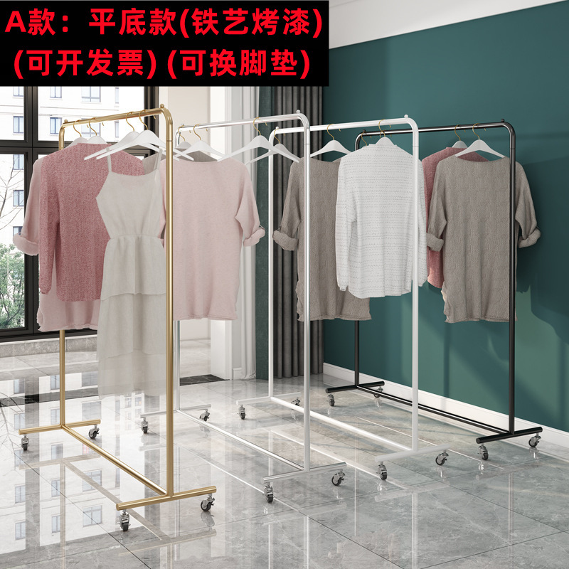 服装店展示架落地式挂衣架中岛架卧室阳台晾衣架批发可移动带轮子