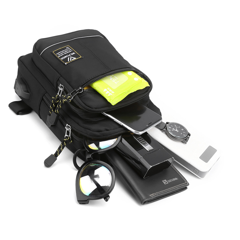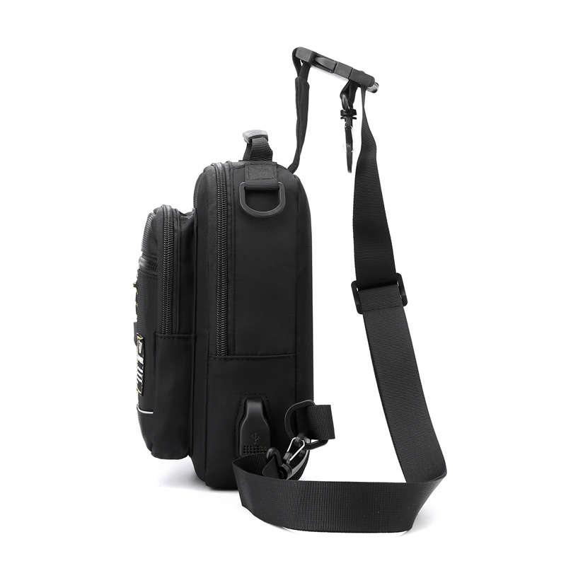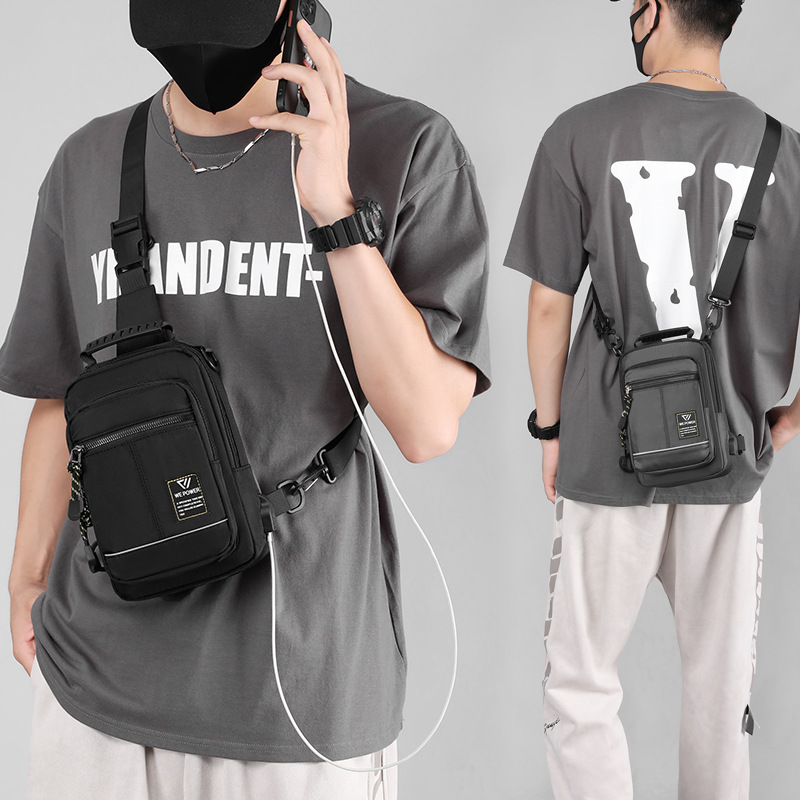 男士胸包休闲斜挎包尼龙布时尚小背包胸前单肩包男包