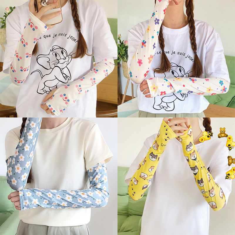 网红印花卡通冰袖批发冰丝防晒袖套女 户外防紫外线开车护臂冰袖