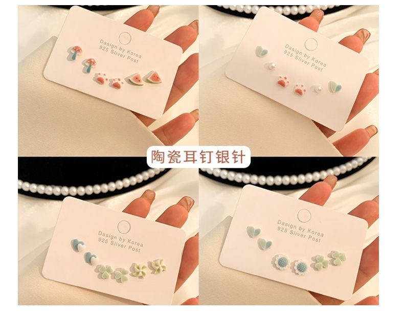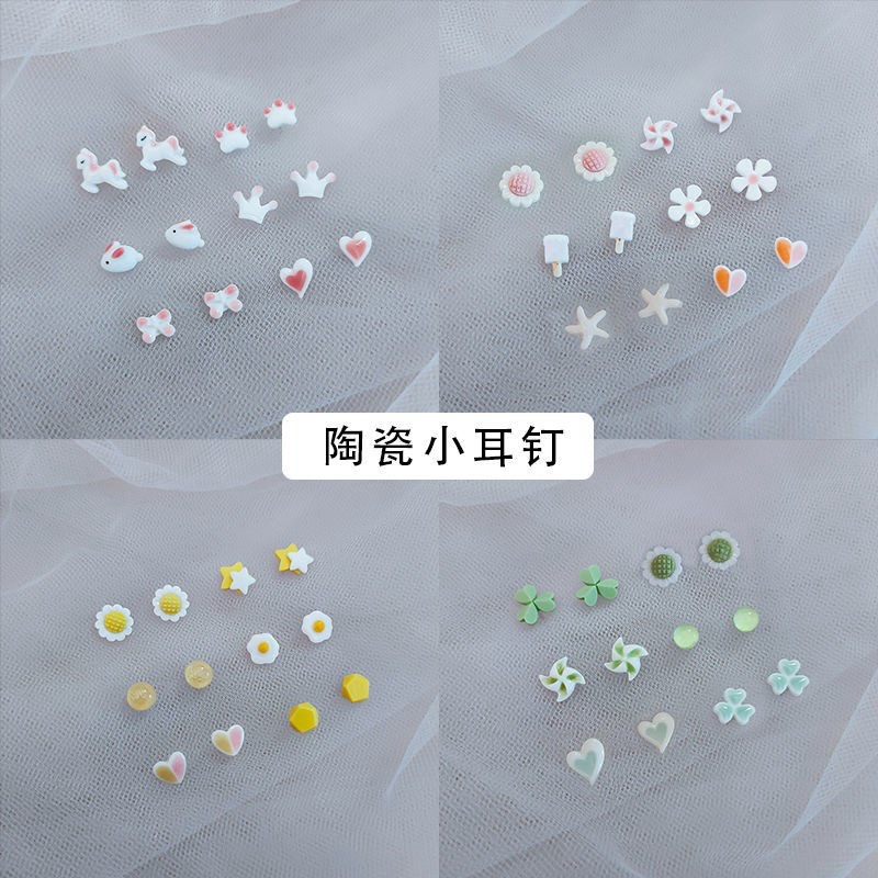 2023网红新款925银针陶瓷耳钉设计感简约气质耳环夏季可爱耳饰女