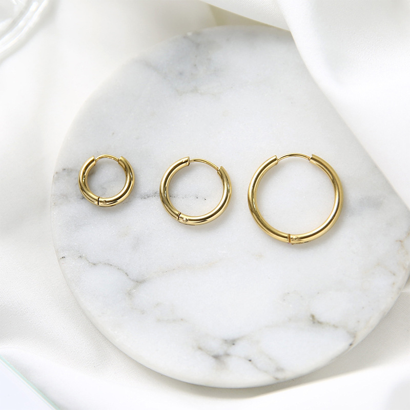 跨境几何型男女通用不锈钢圆圈双面耳环潮人饰品百搭个性圆线耳饰