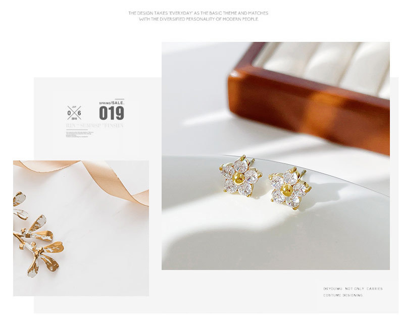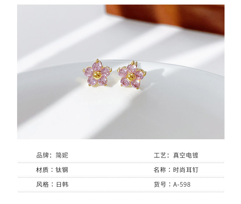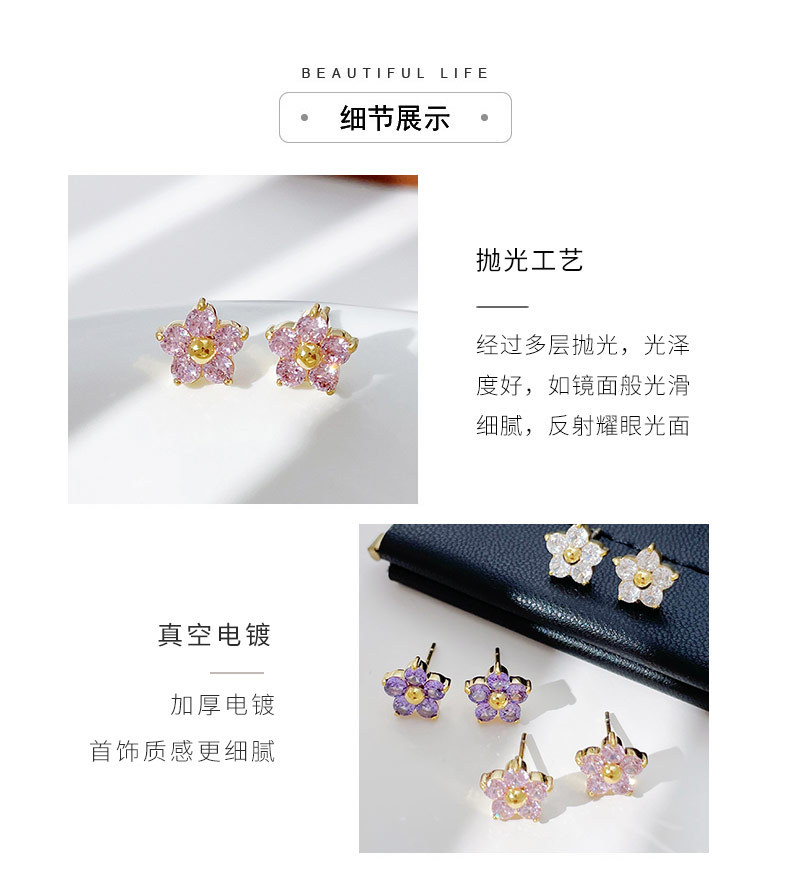 欧美新款小巧甜美镶钻花瓣耳钉少女精致轻奢小众不锈钢花朵耳饰女