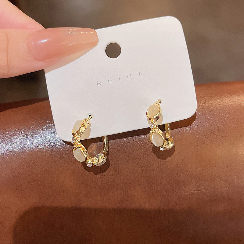 轻奢小众猫眼石C形耳环女S925银针百搭气质网红同款耳钉耳饰批发