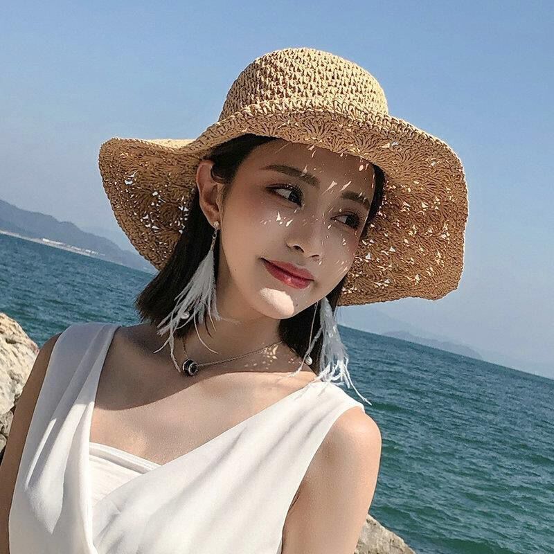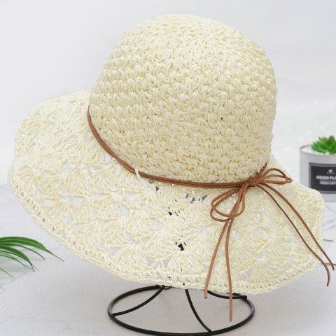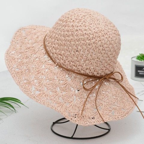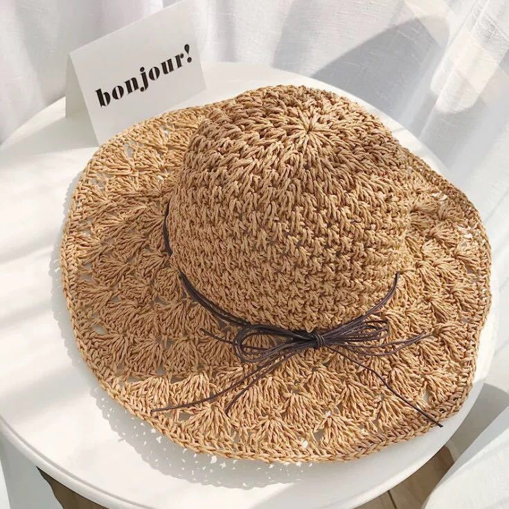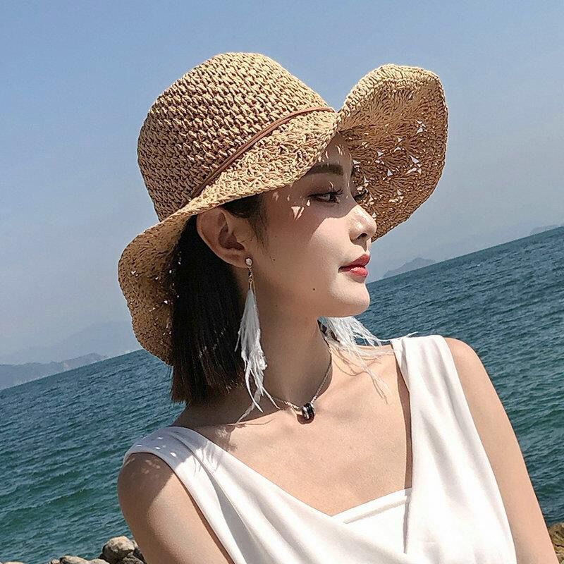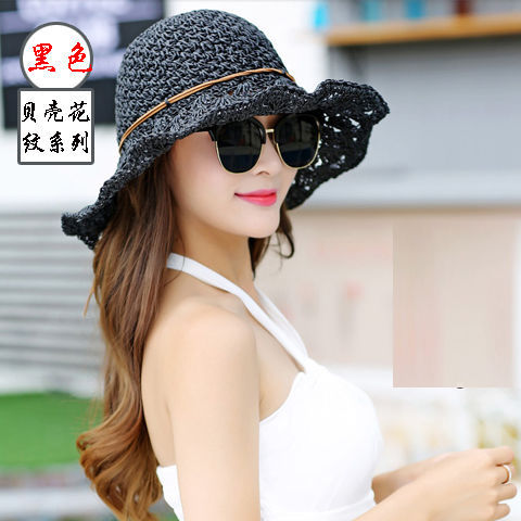 草帽女夏小清新韩版编织漂亮帽子渔夫帽沙滩帽防晒海边沙滩遮阳帽