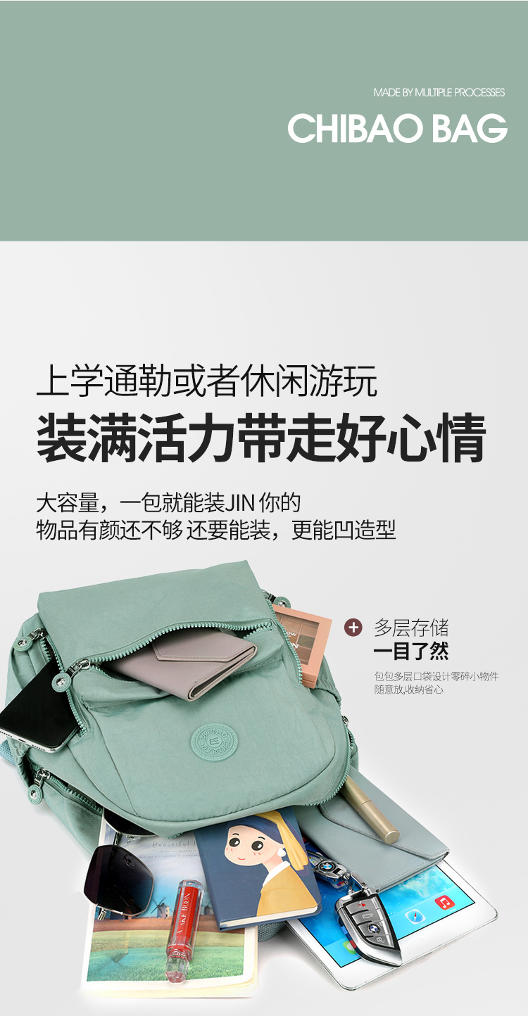 跨境新款尼龙布时尚双肩包休闲旅行包多层存储中学生书包