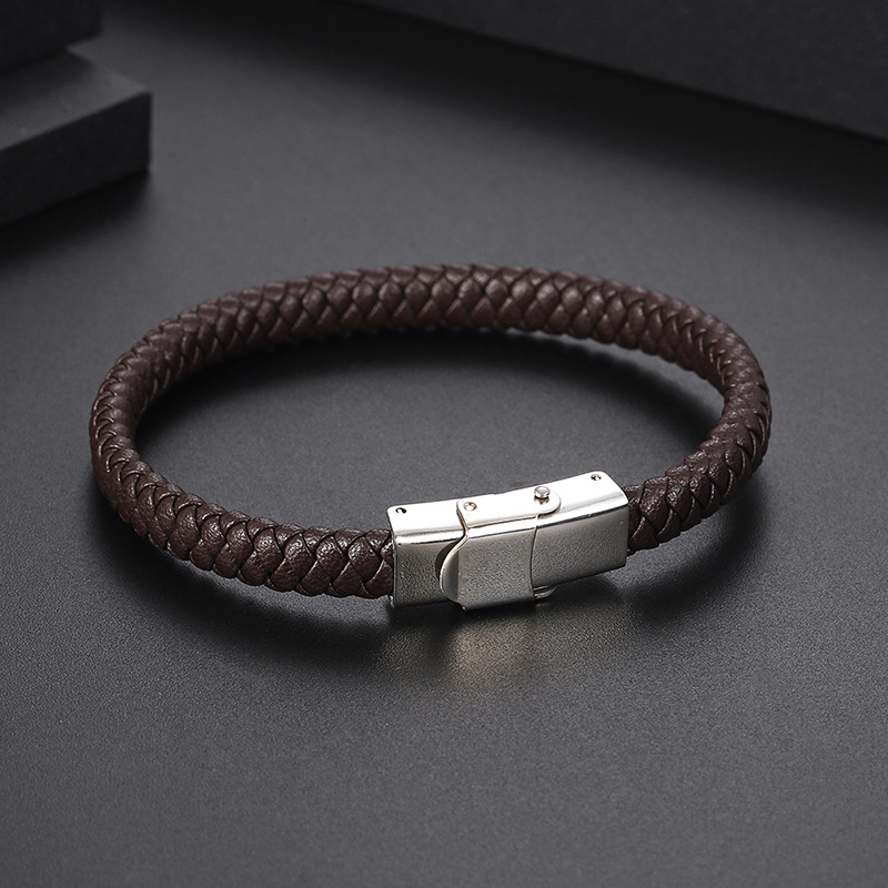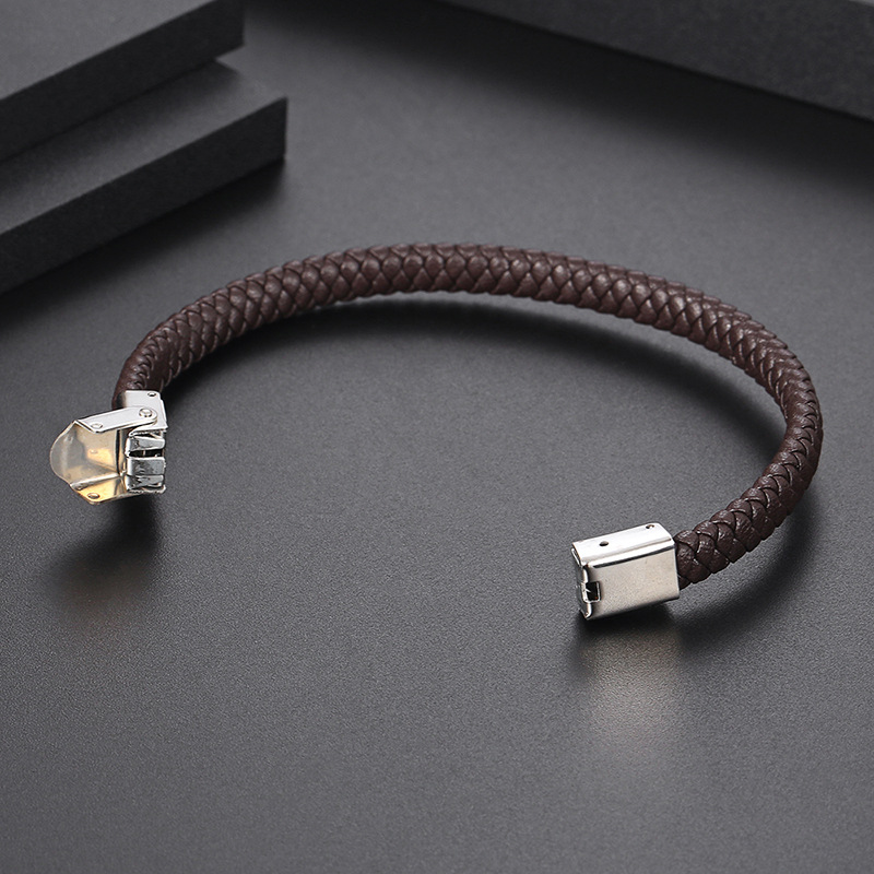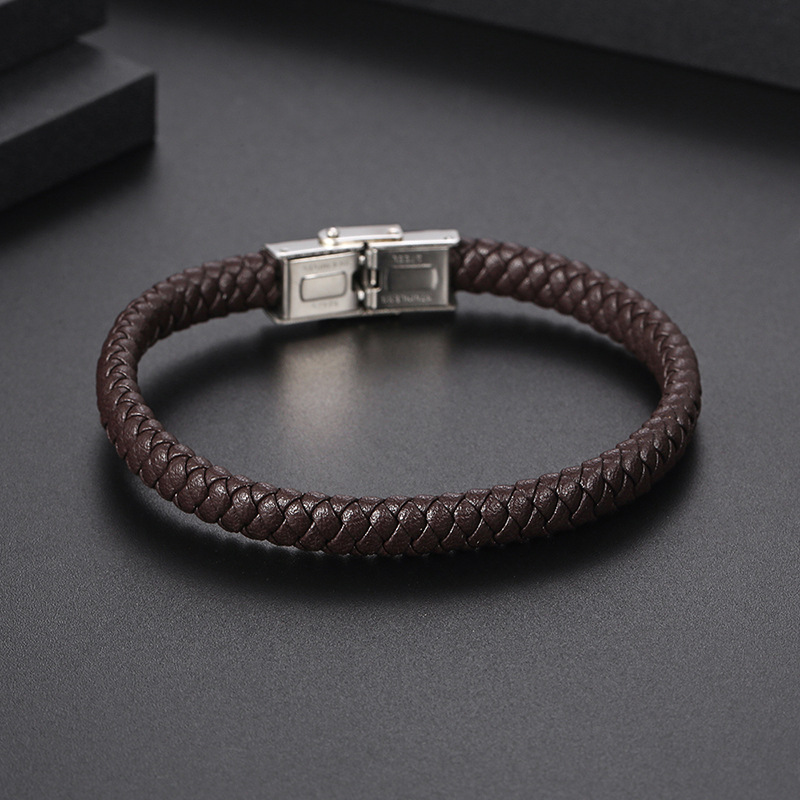 IMI小众设计棕色皮质编织手绳男女潮酷嘻哈情侣手镯跨境饰品YL260