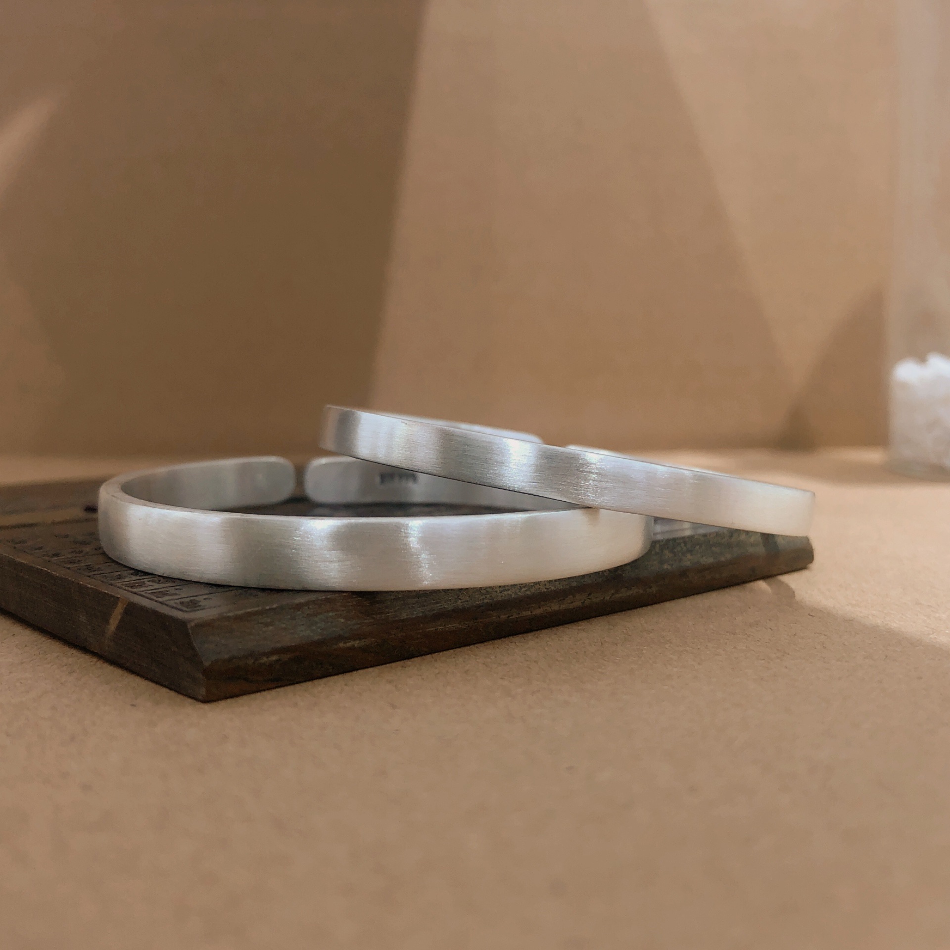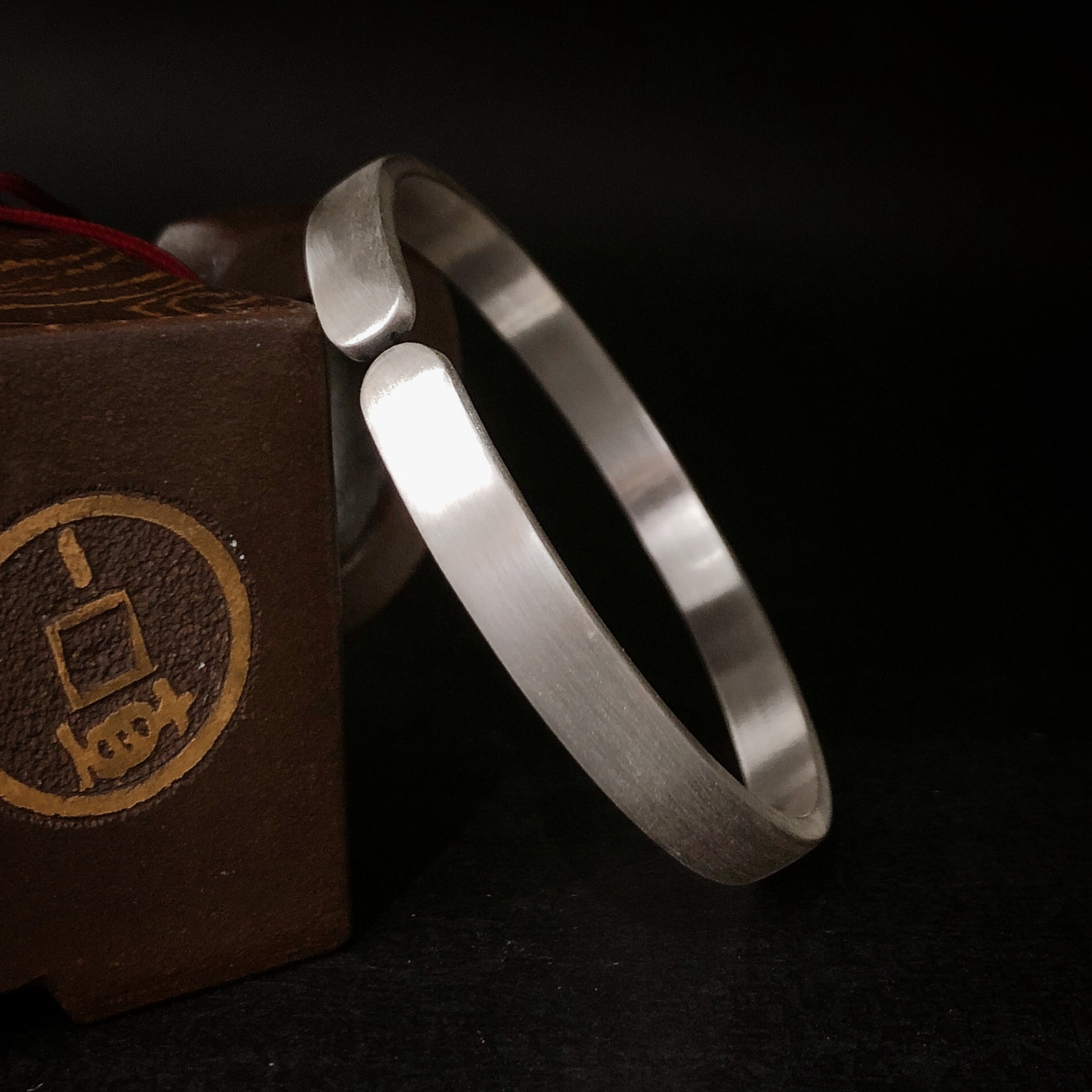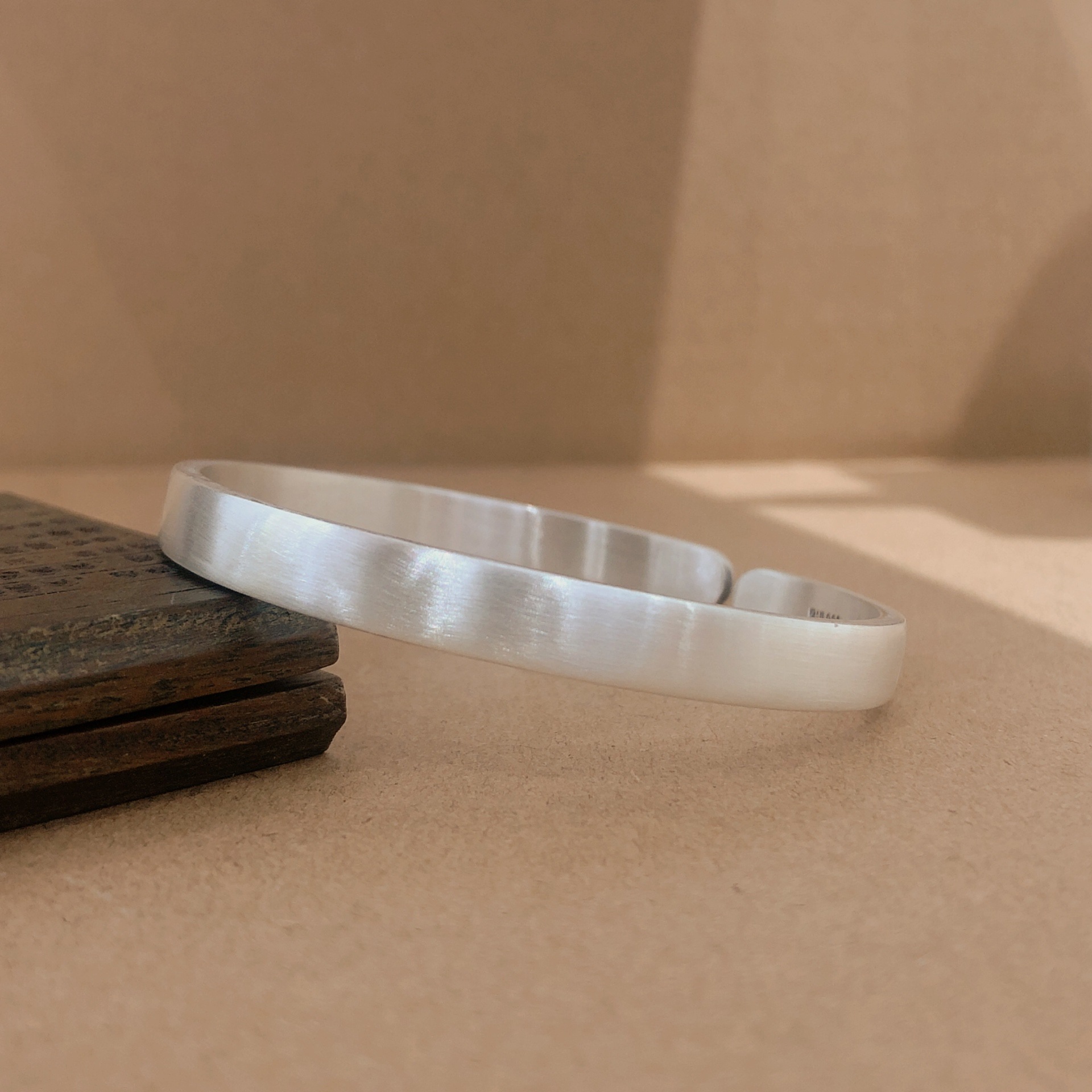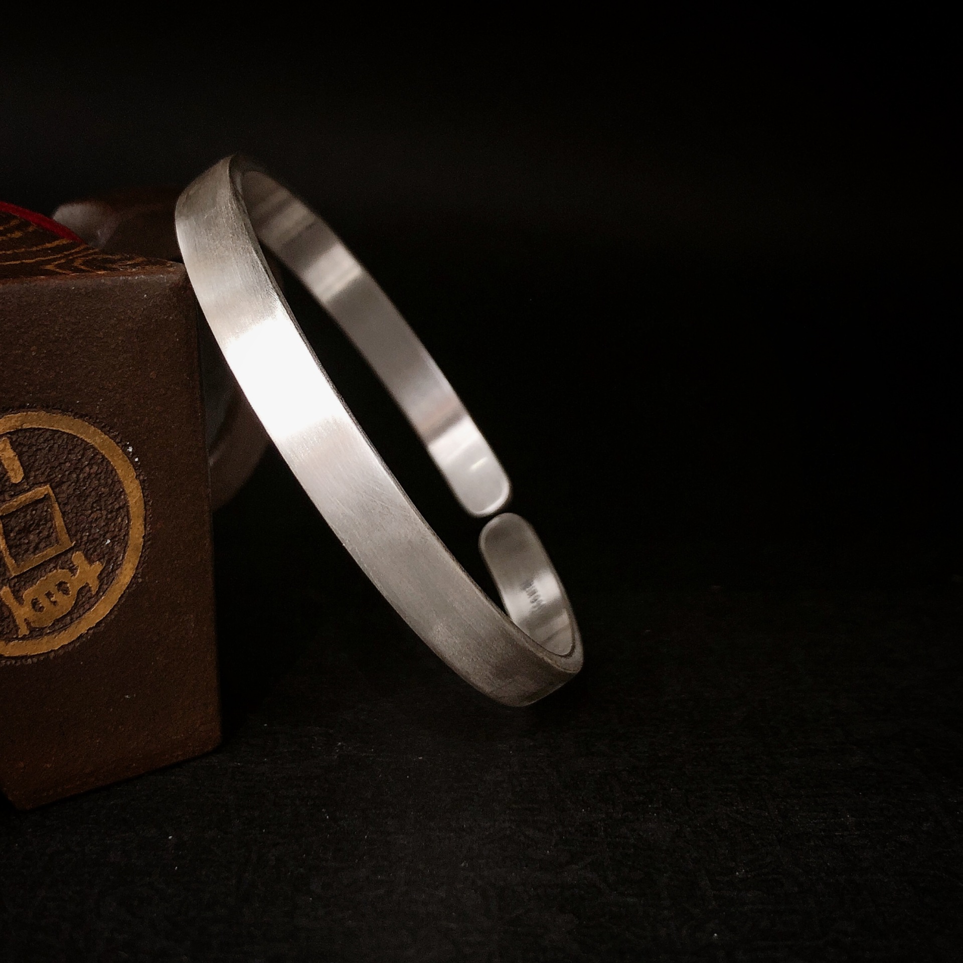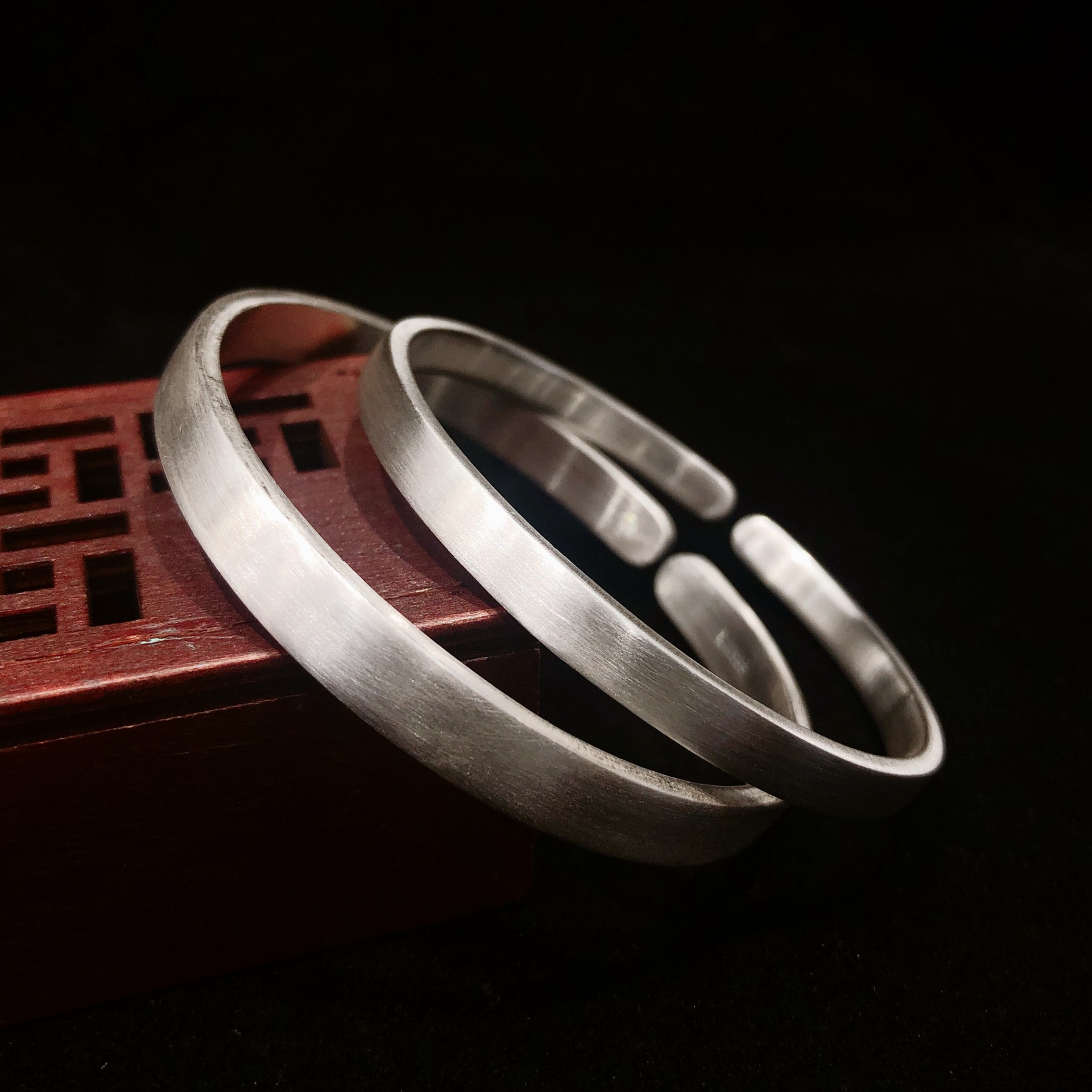 福氏足银999复古磨砂做旧哑光平面极简韩版个性开口镯子纯银手镯