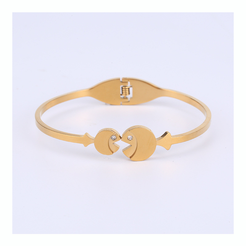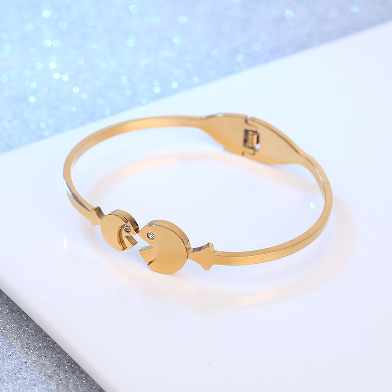 日韩新款钛钢可爱亲吻双鱼手镯 极简设计不锈钢kiss情侣小鱼手镯