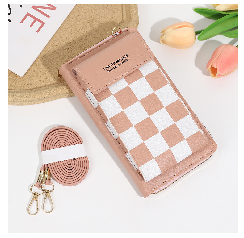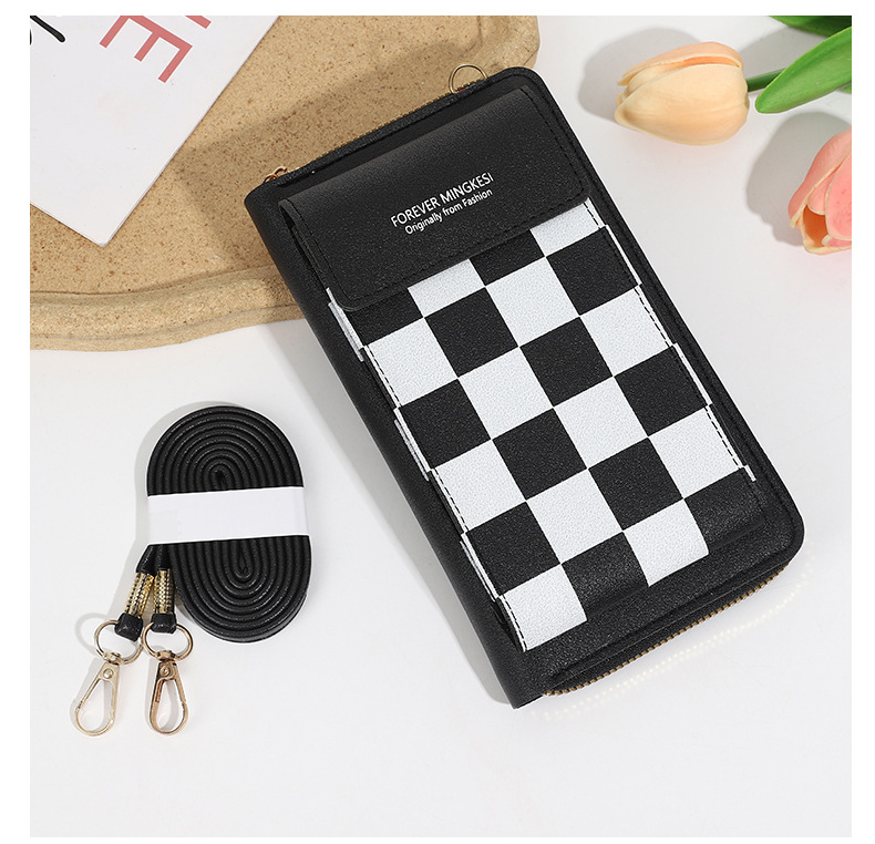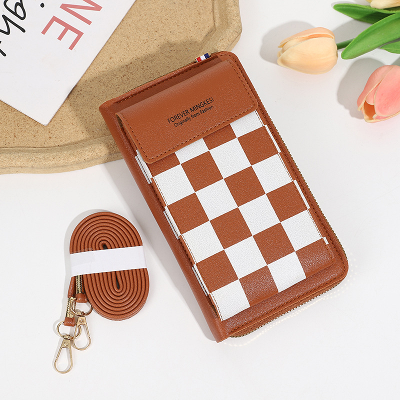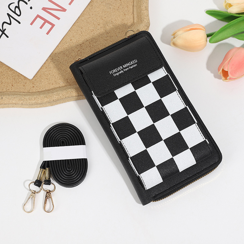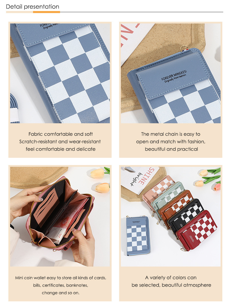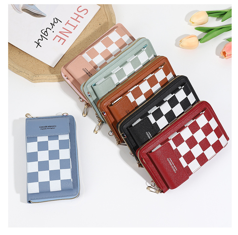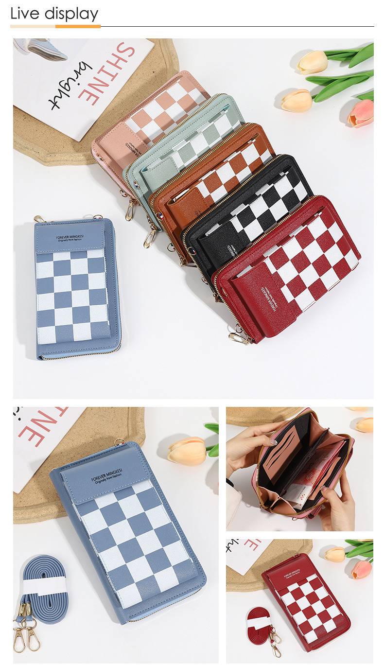 ins女士迷你手机包 棋盘格休闲斜挎包多层零钱包证件收纳卡包批发