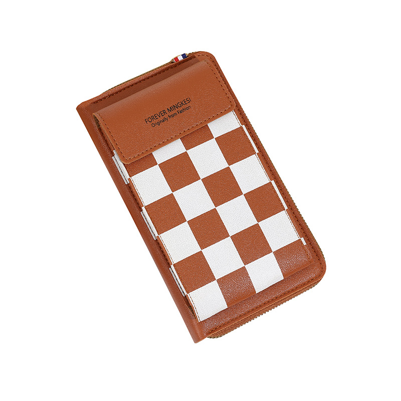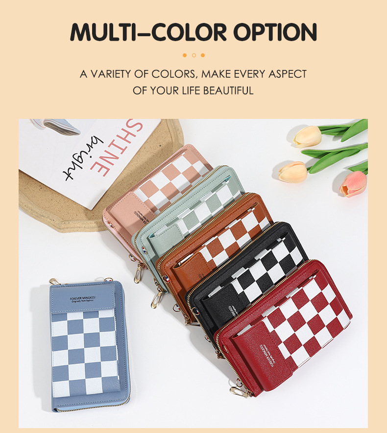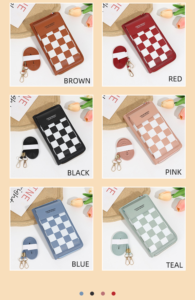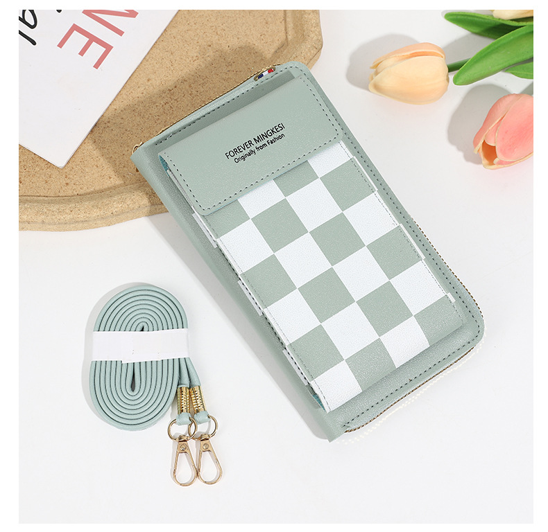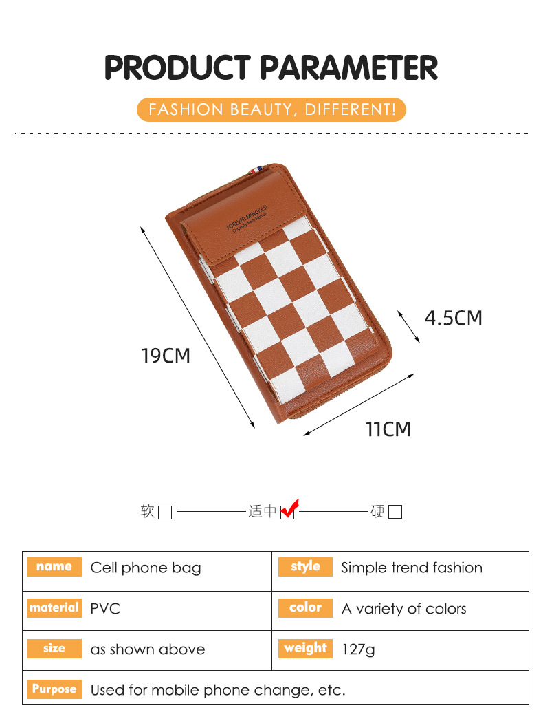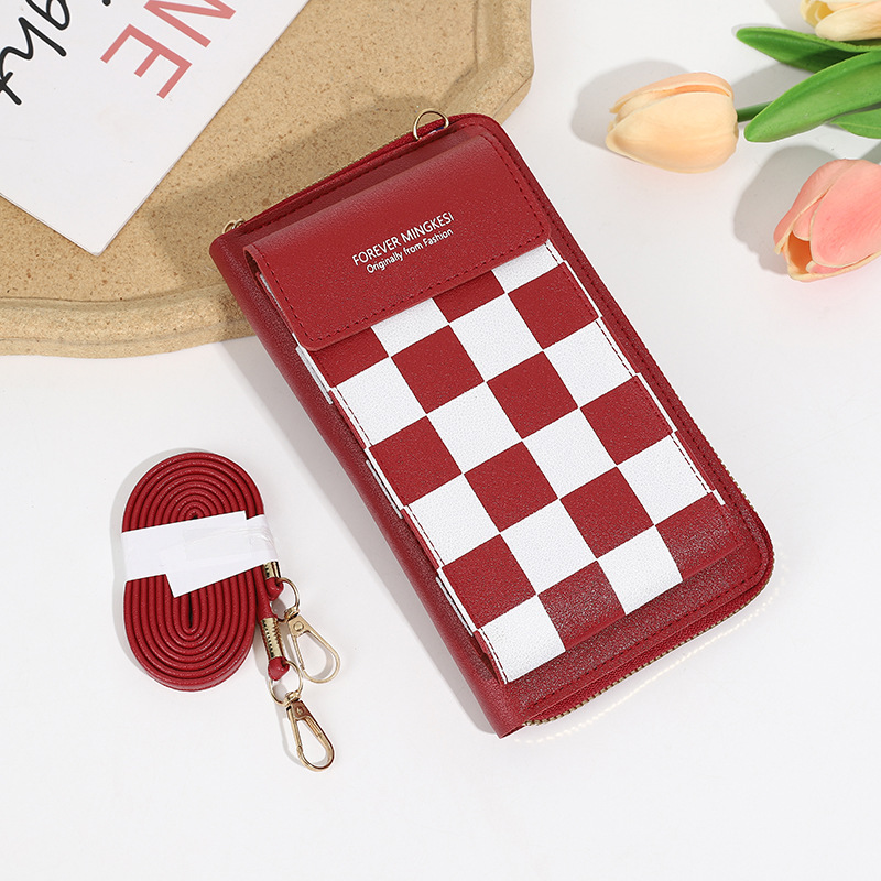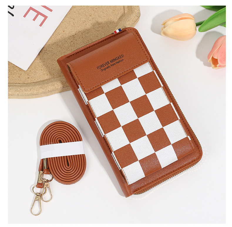 ins女士迷你手机包 棋盘格休闲斜挎包多层零钱包证件收纳卡包批发