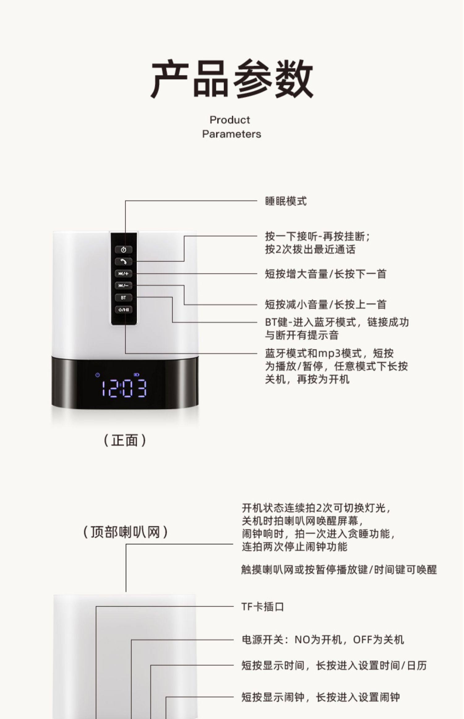 蓝牙音响小夜灯充电式卧室床头睡眠睡觉台灯氛围生日礼物