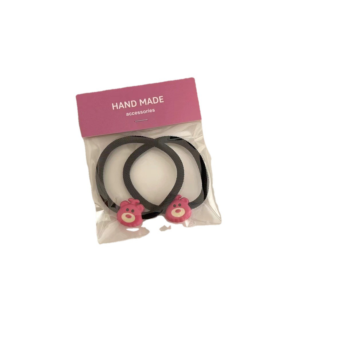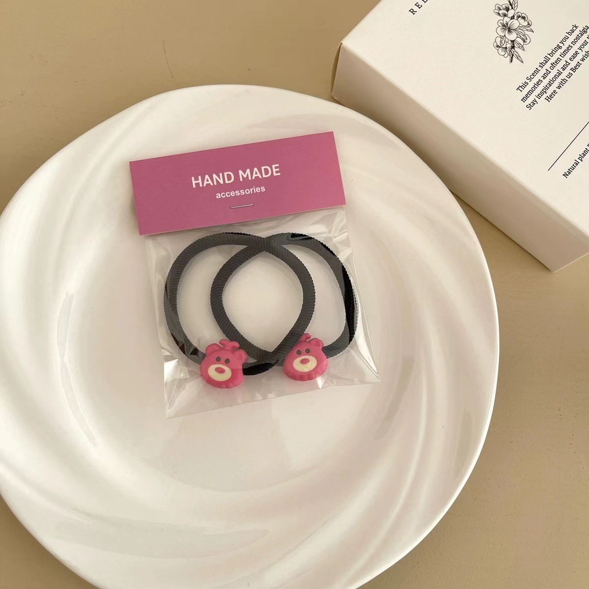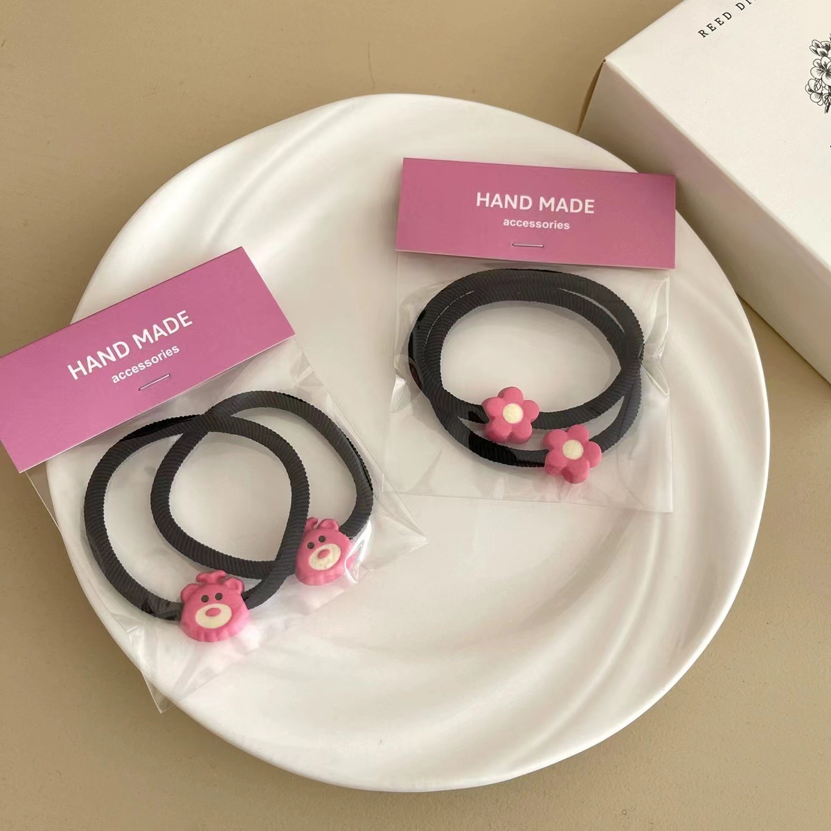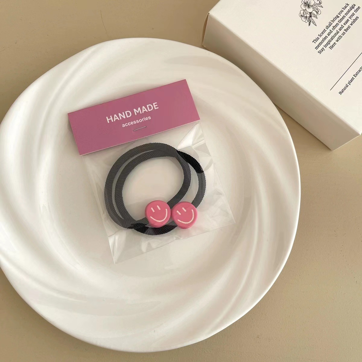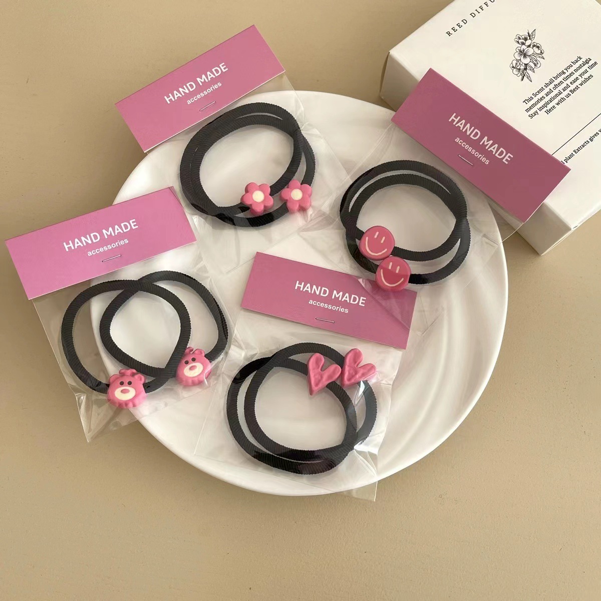 少女玫粉色系列可爱笑脸小熊发绳基础百搭头绳丸子头皮筋发饰新品