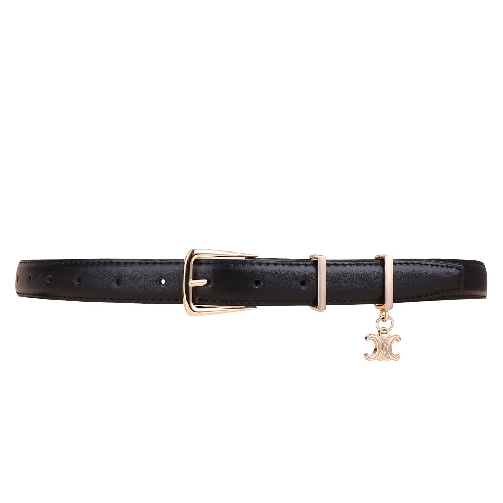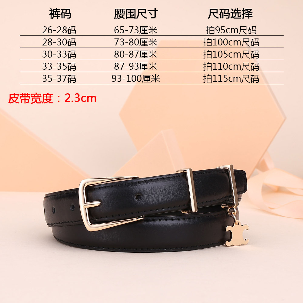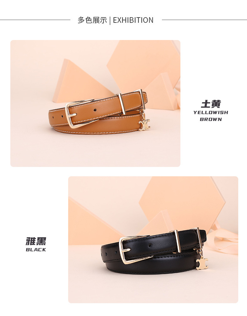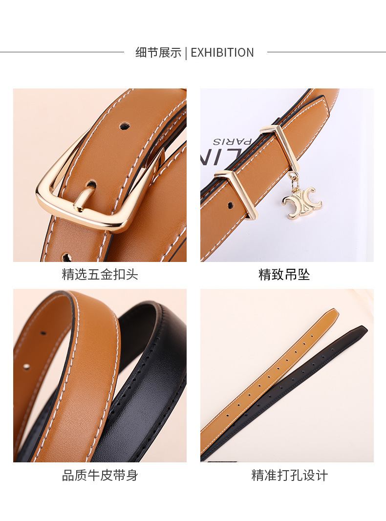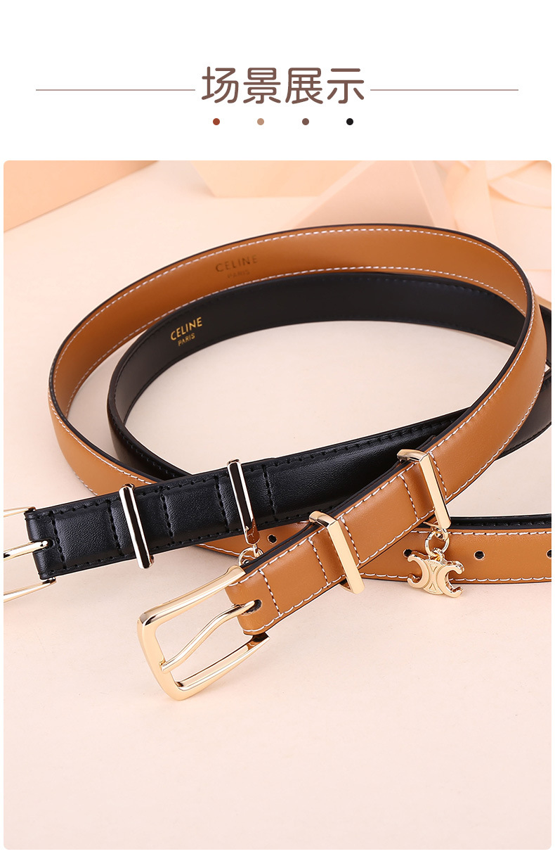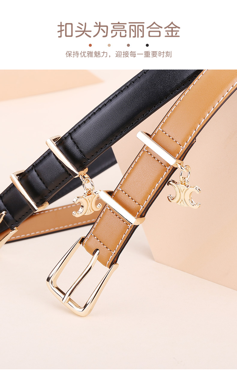 新女士凯旋门针扣吊坠款腰带女百搭韩版牛皮皮带女西装连衣裙裤带