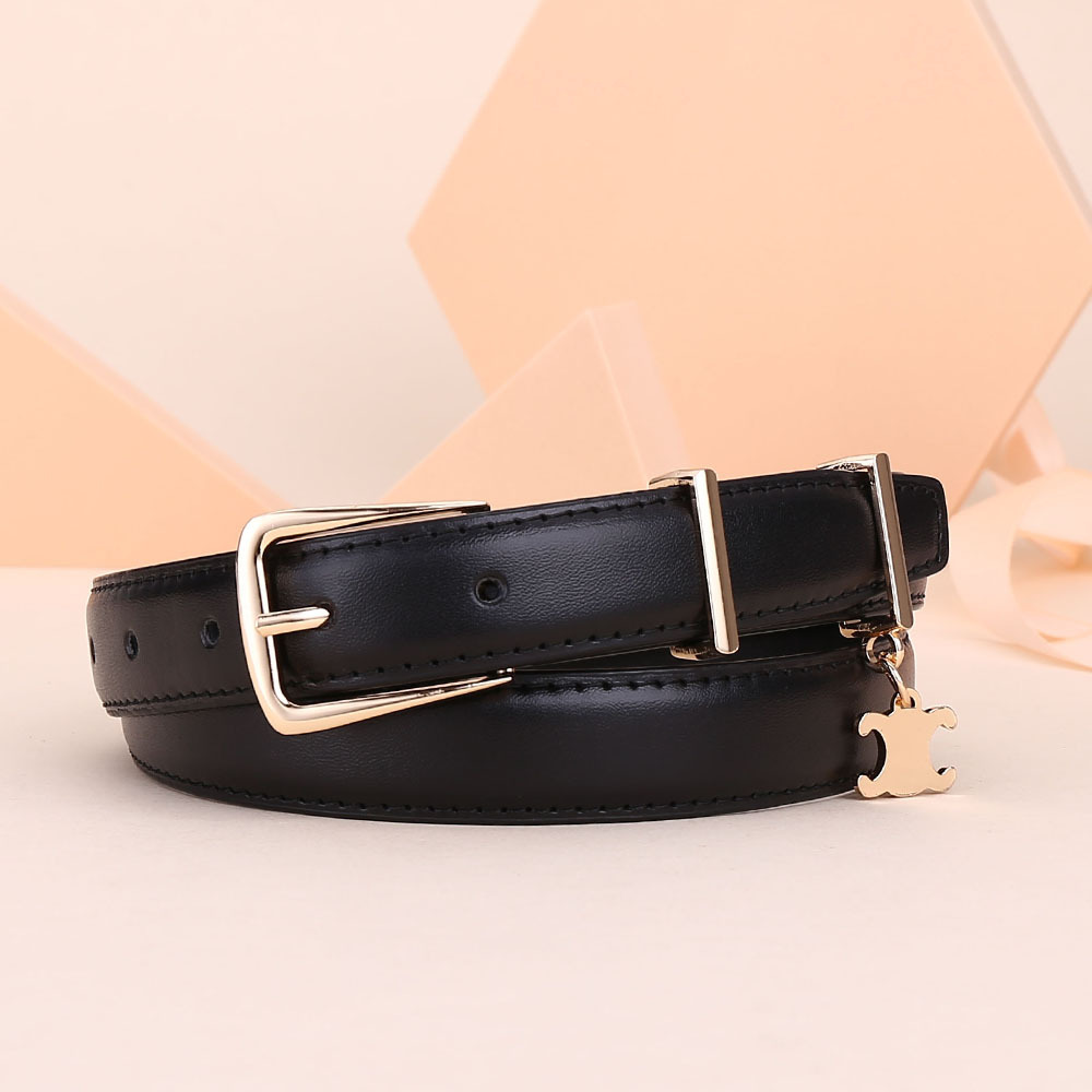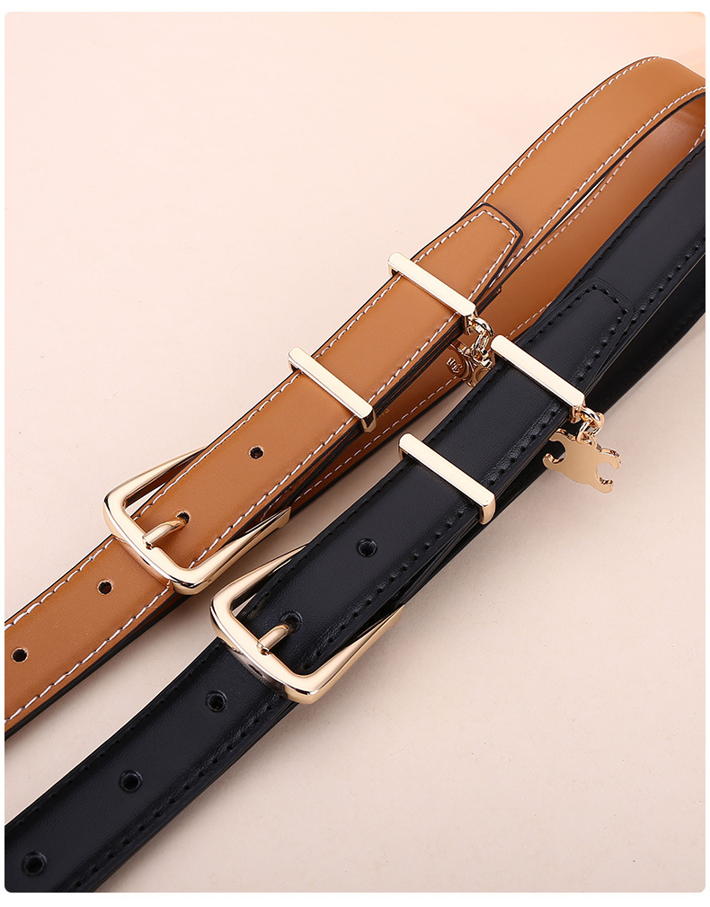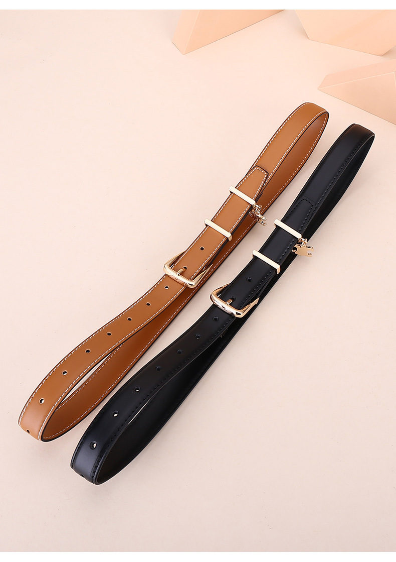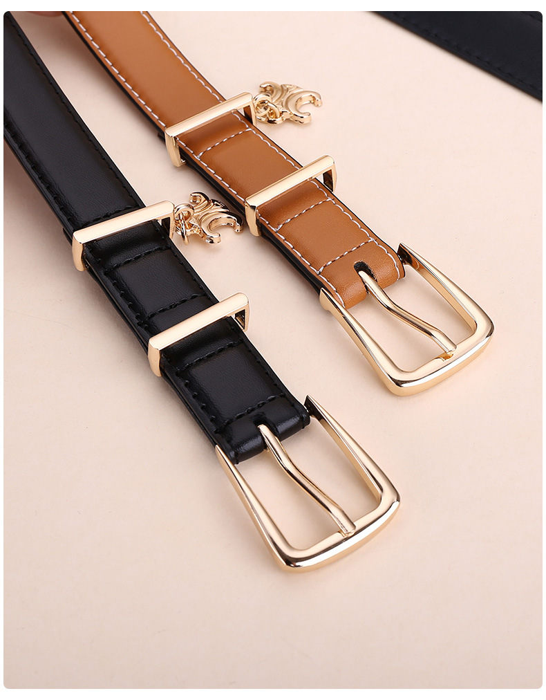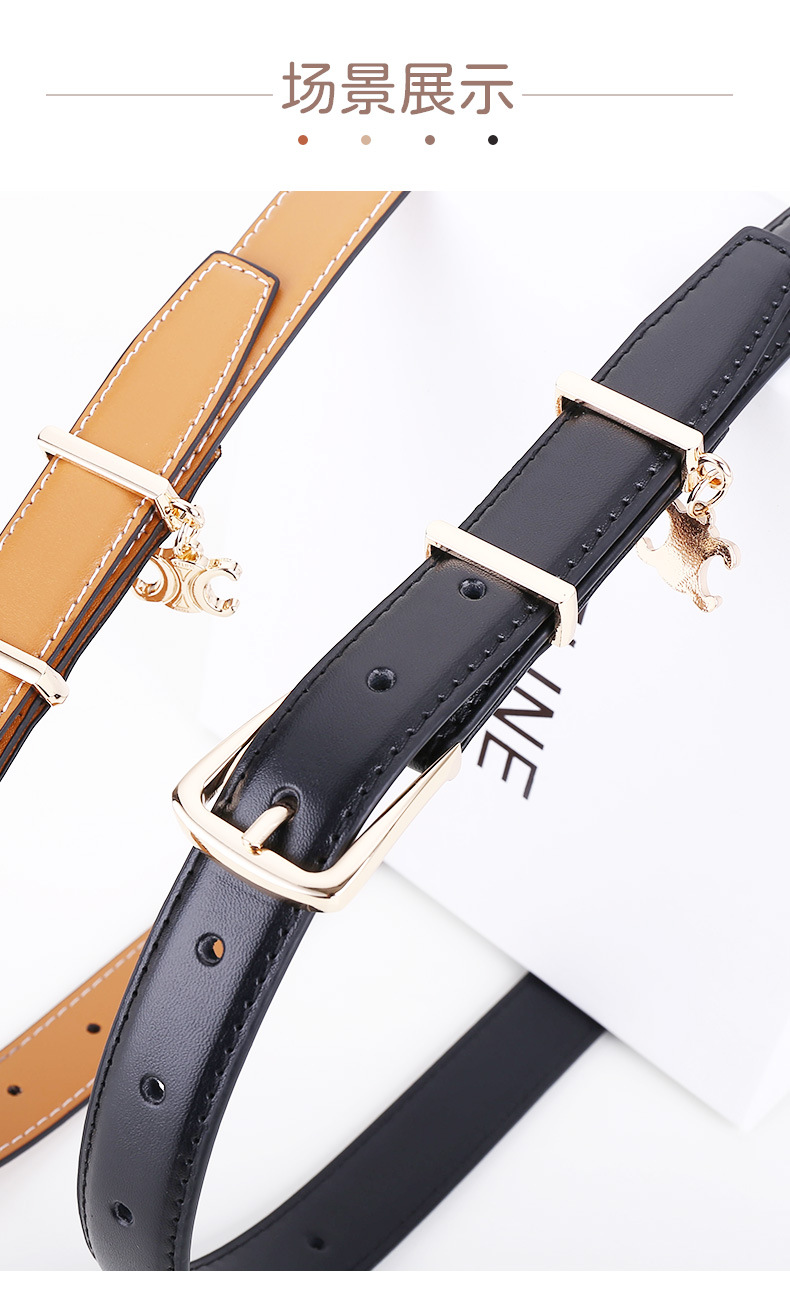 新女士凯旋门针扣吊坠款腰带女百搭韩版牛皮皮带女西装连衣裙裤带