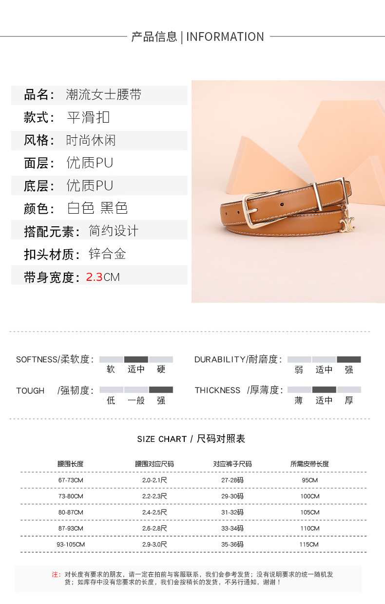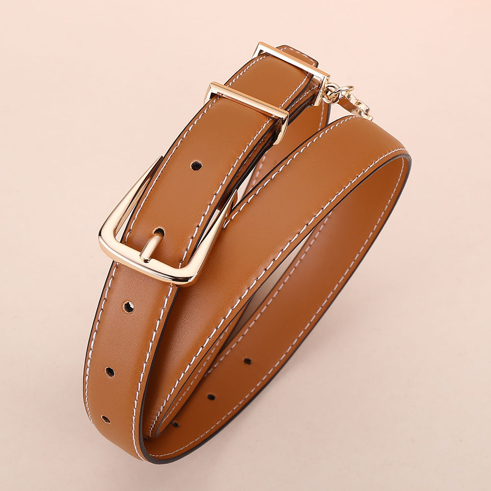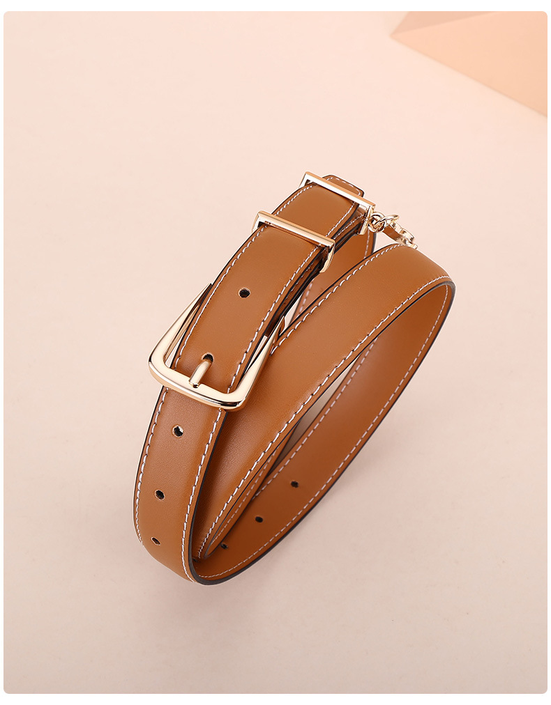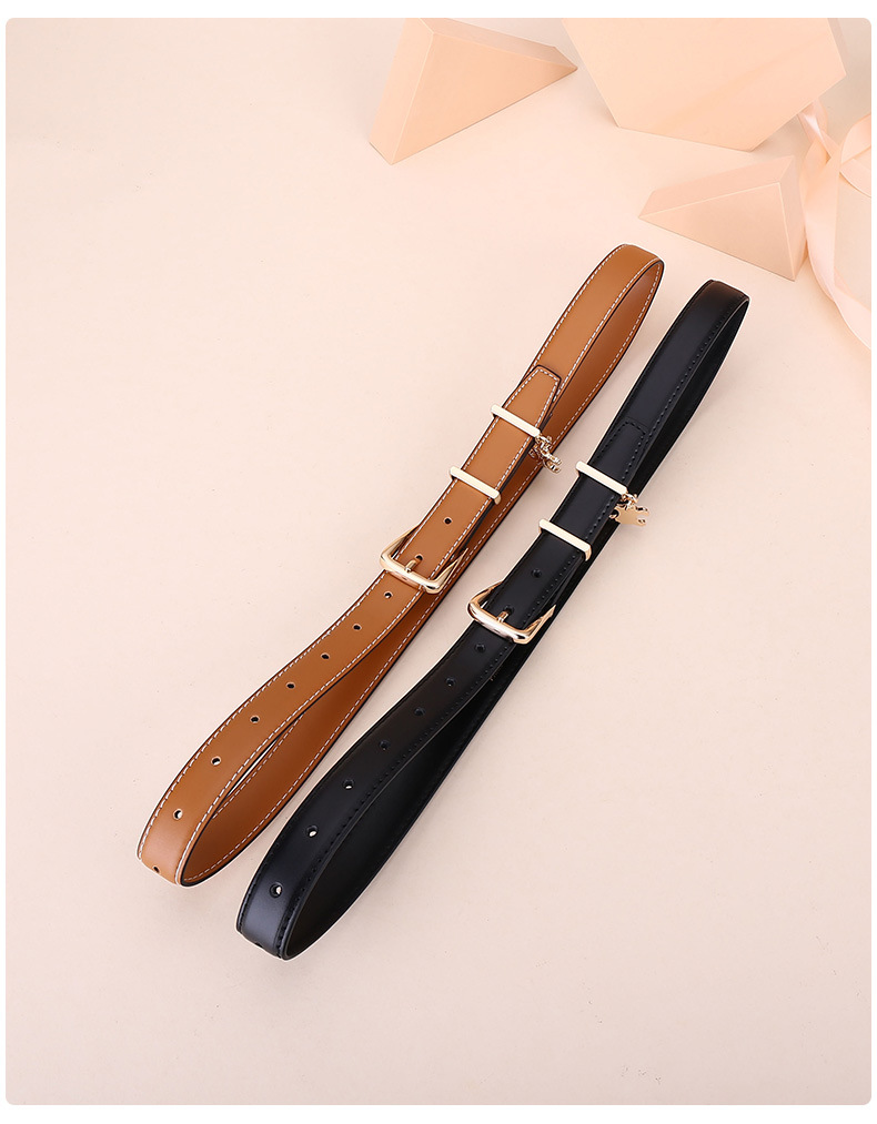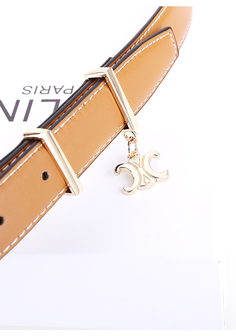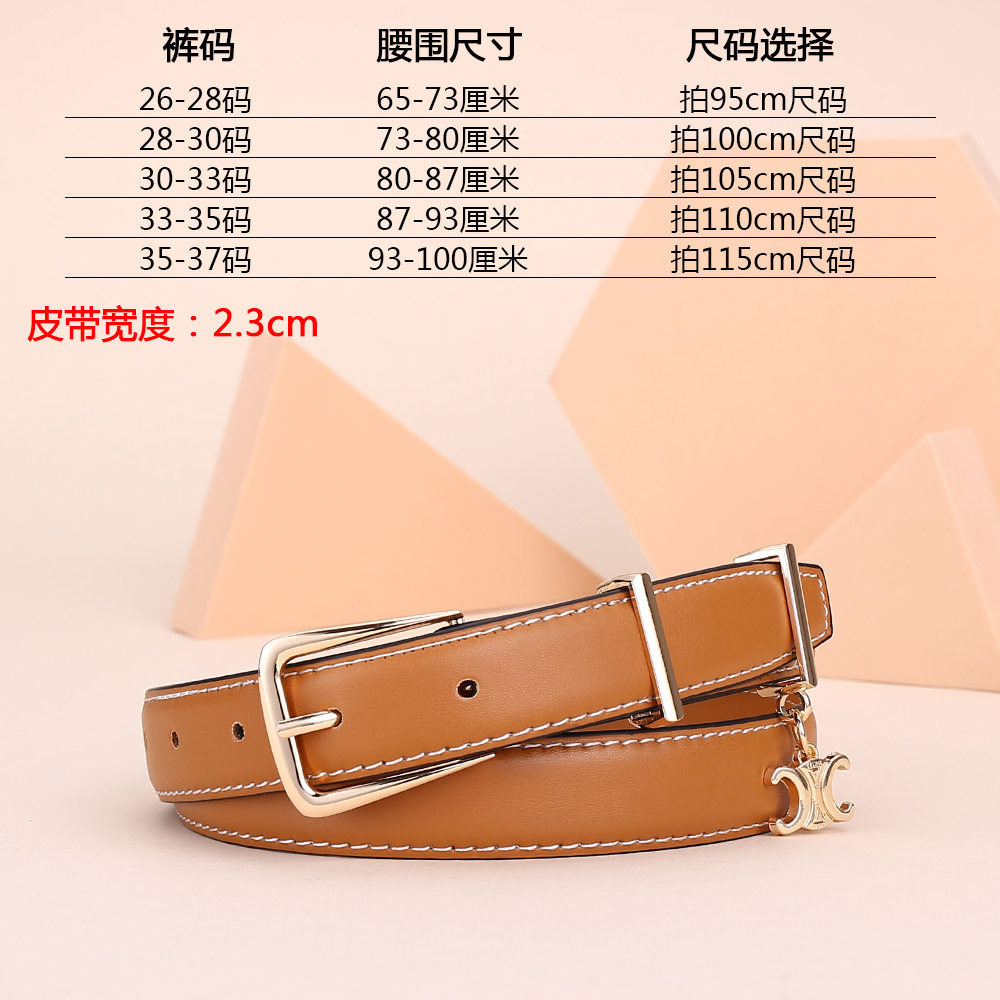 新女士凯旋门针扣吊坠款腰带女百搭韩版牛皮皮带女西装连衣裙裤带