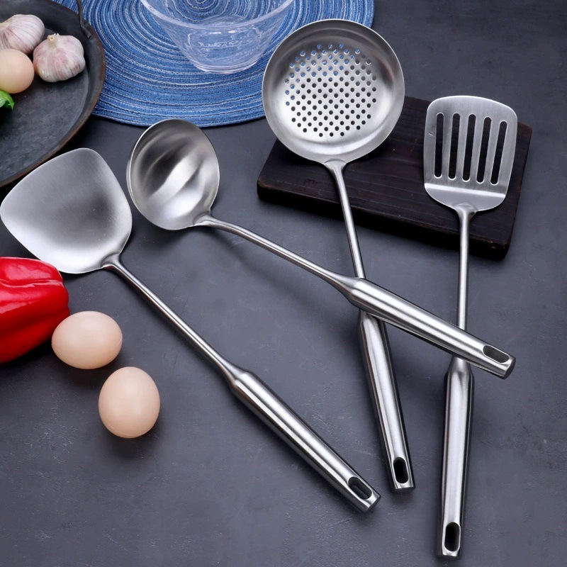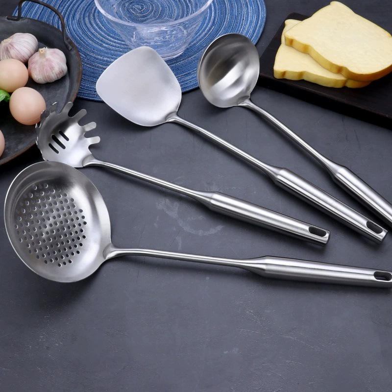 304不锈钢 圆柄厨具汤勺漏勺烹饪勺铲粉扒六件套家用酒店厨房用品
