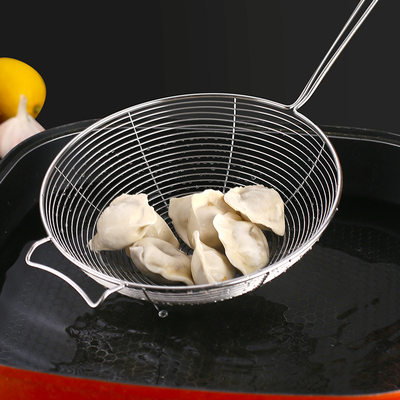 304不锈钢漏勺批发 家用油炸线漏网筛捞勺火锅勺厨房加密油格漏网