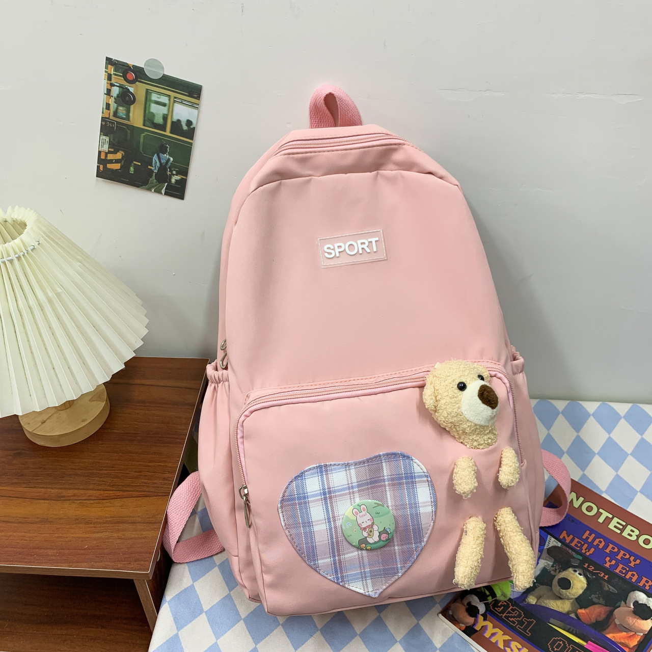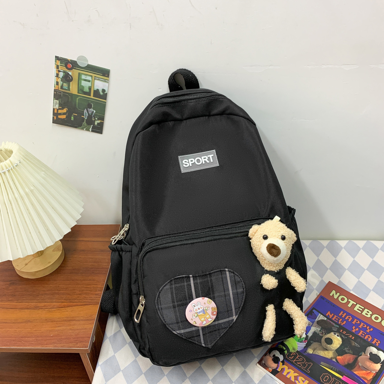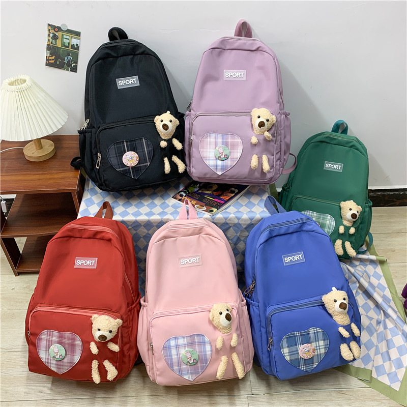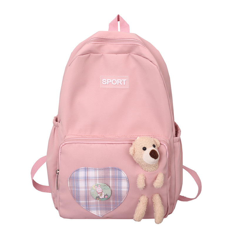新款复合布学生包可爱卡通小清新双肩背包学院风书包简约休闲书包