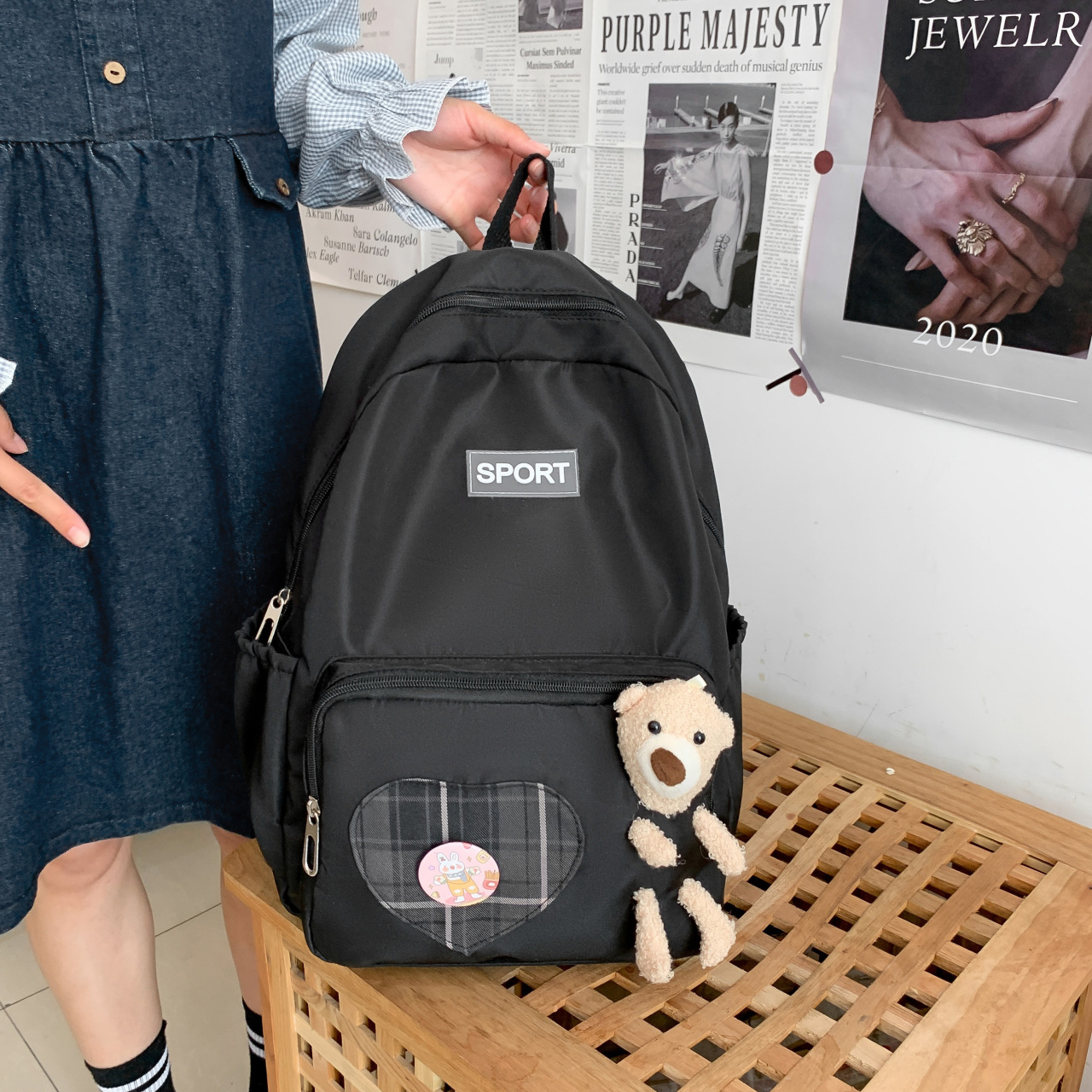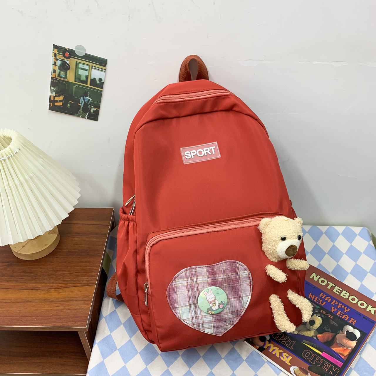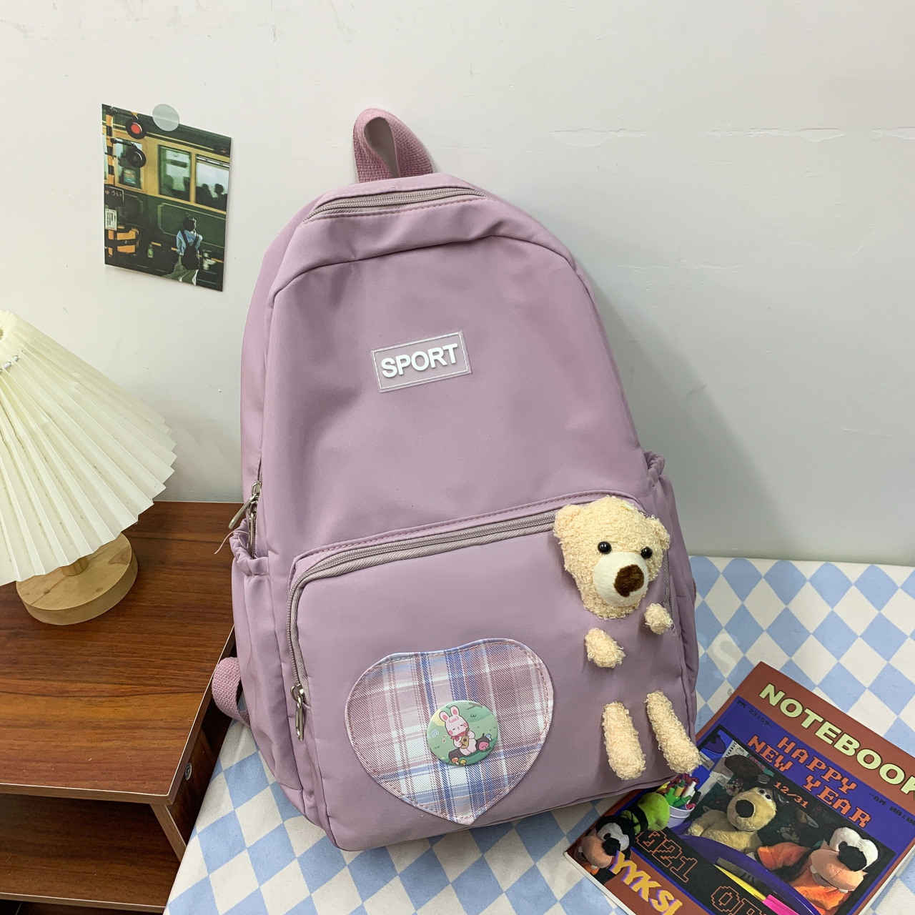 新款复合布学生包可爱卡通小清新双肩背包学院风书包简约休闲书包