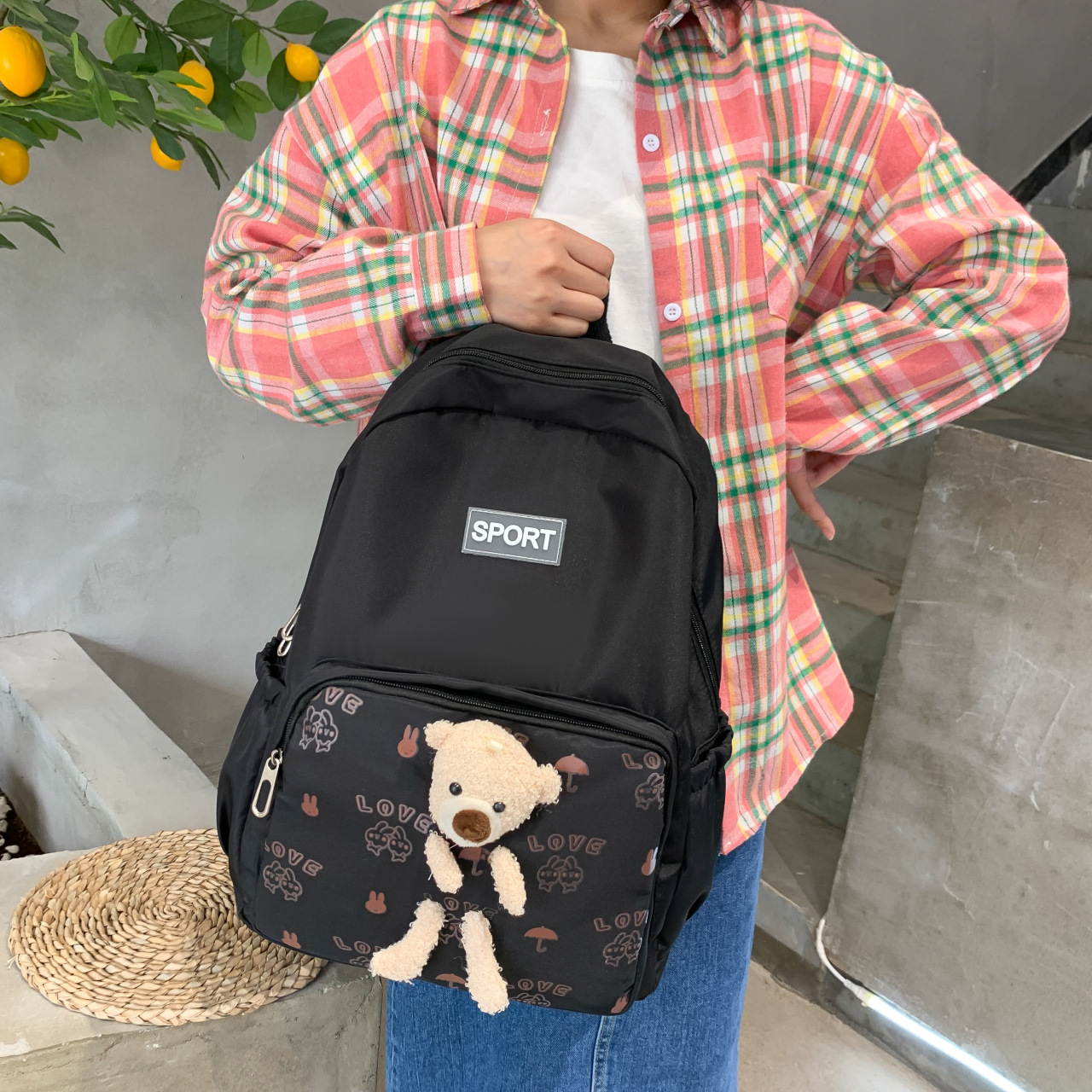 爆款休闲学生包简约背包初中小学生书包百搭轻便大容量双背包批发