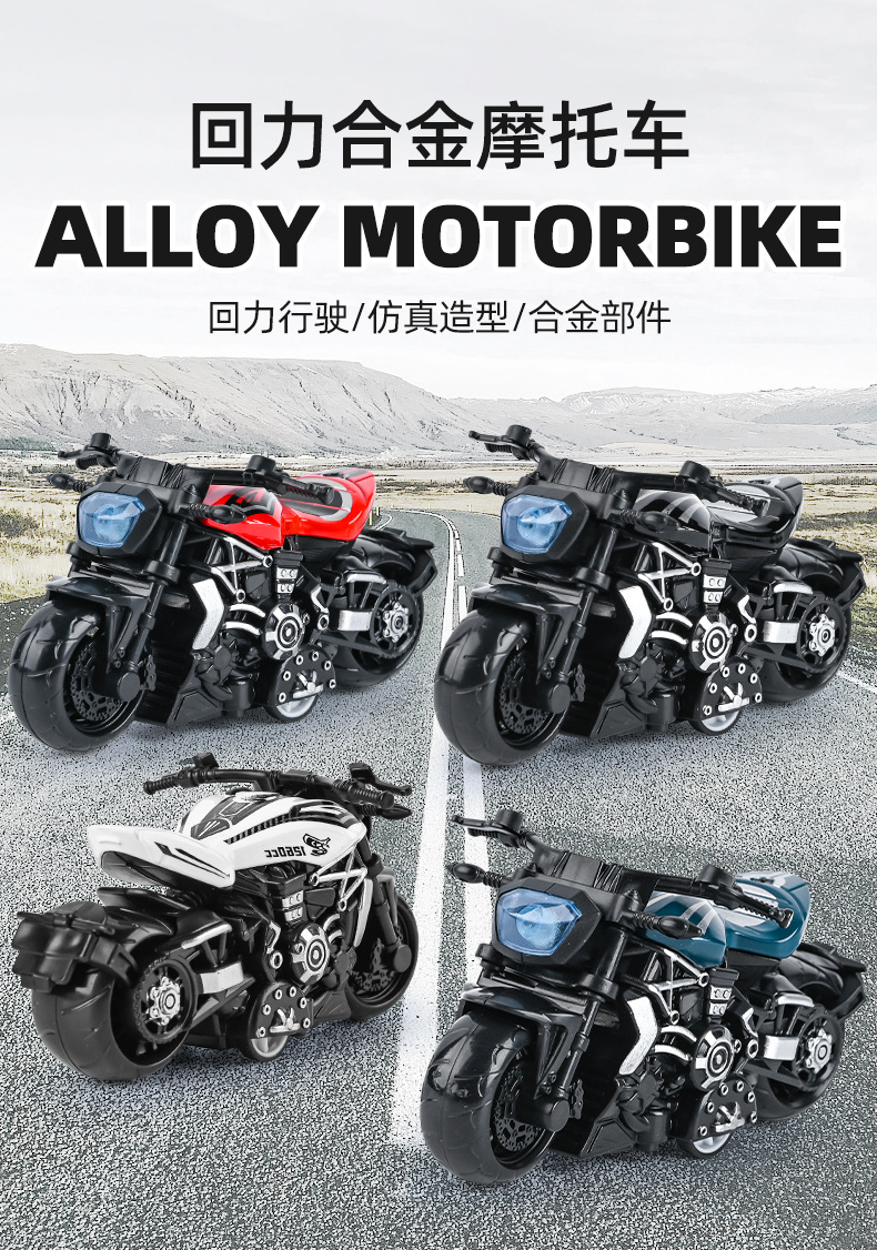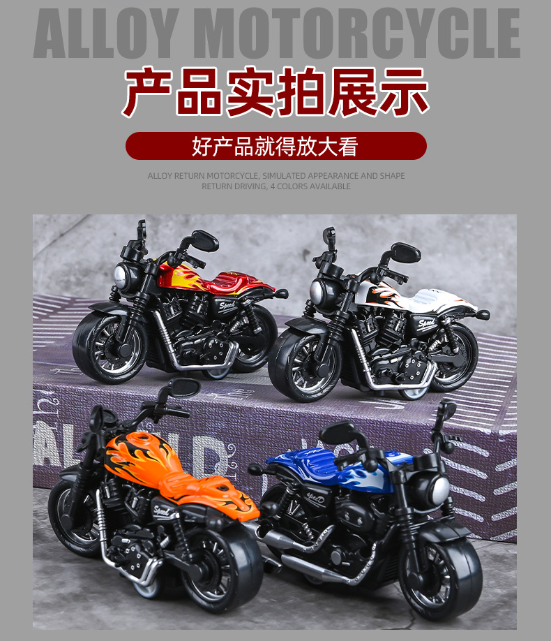 抖音网红儿童玩具男孩宝宝仿真哈雷摩托车模型摆件合金回力玩具车