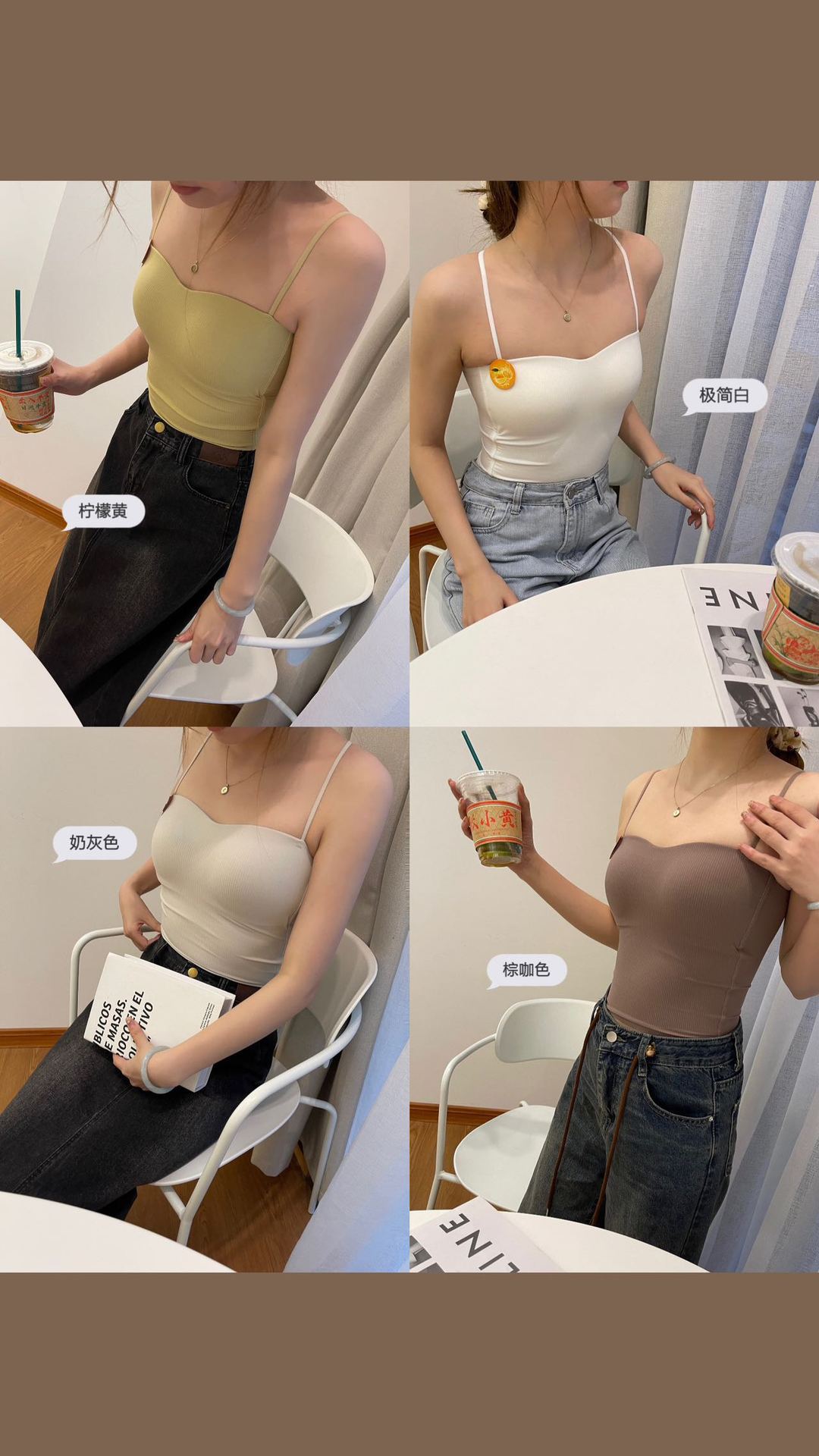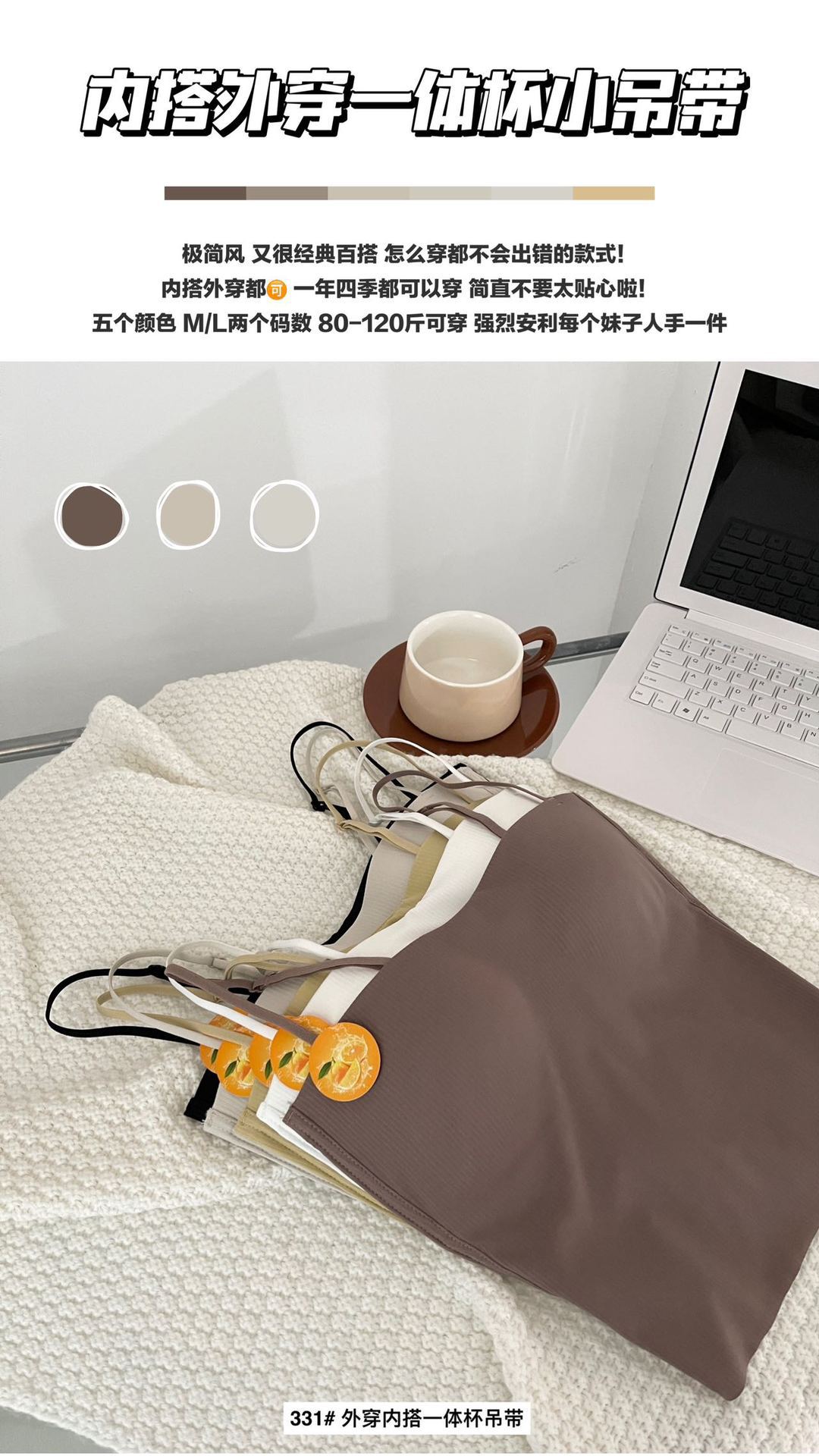 内衣女一体杯内搭外穿吊带简约无痕聚拢显瘦大胸显小美背休闲文胸
