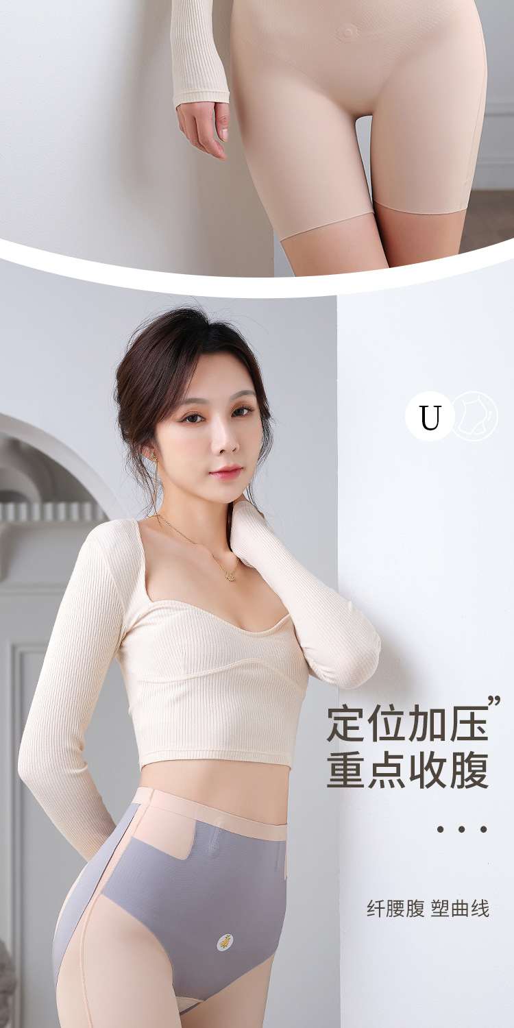 中腰无痕体雕裤蚕丝裆透气生姜养护束腰提臀瘦肚子防走光内裤6113