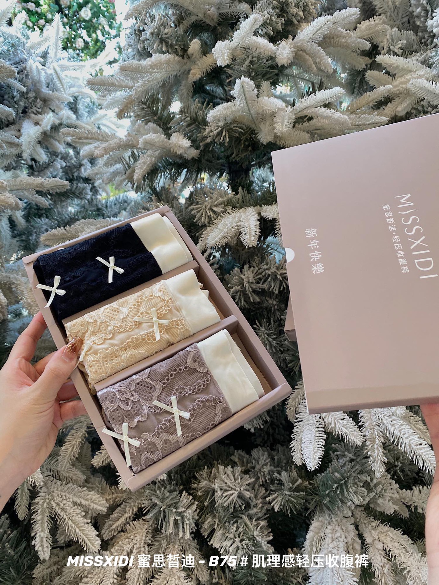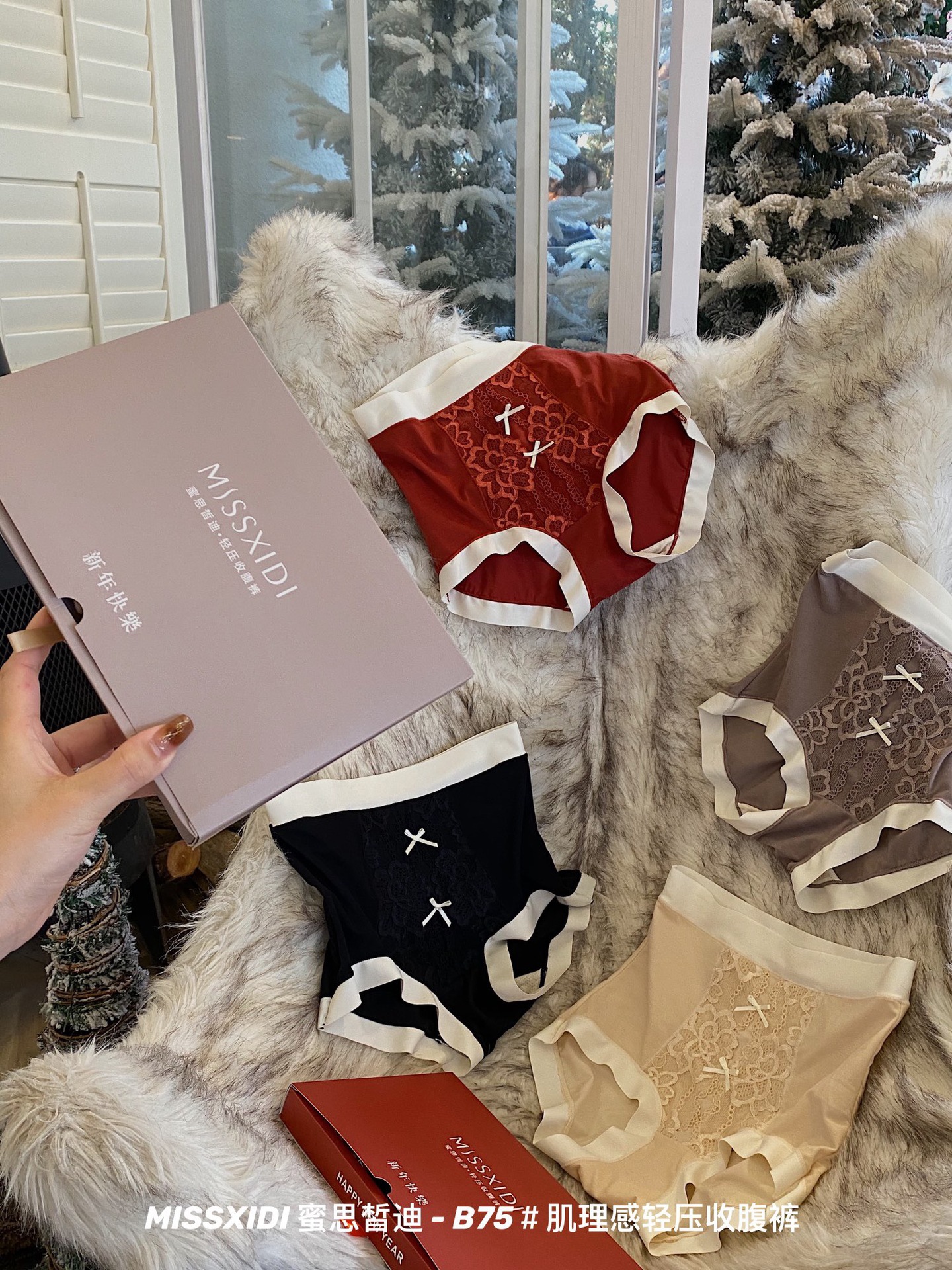 B75肌理感轻压收腹裤女士内裤无痕亲肤高腰三角裤红来运转礼盒装