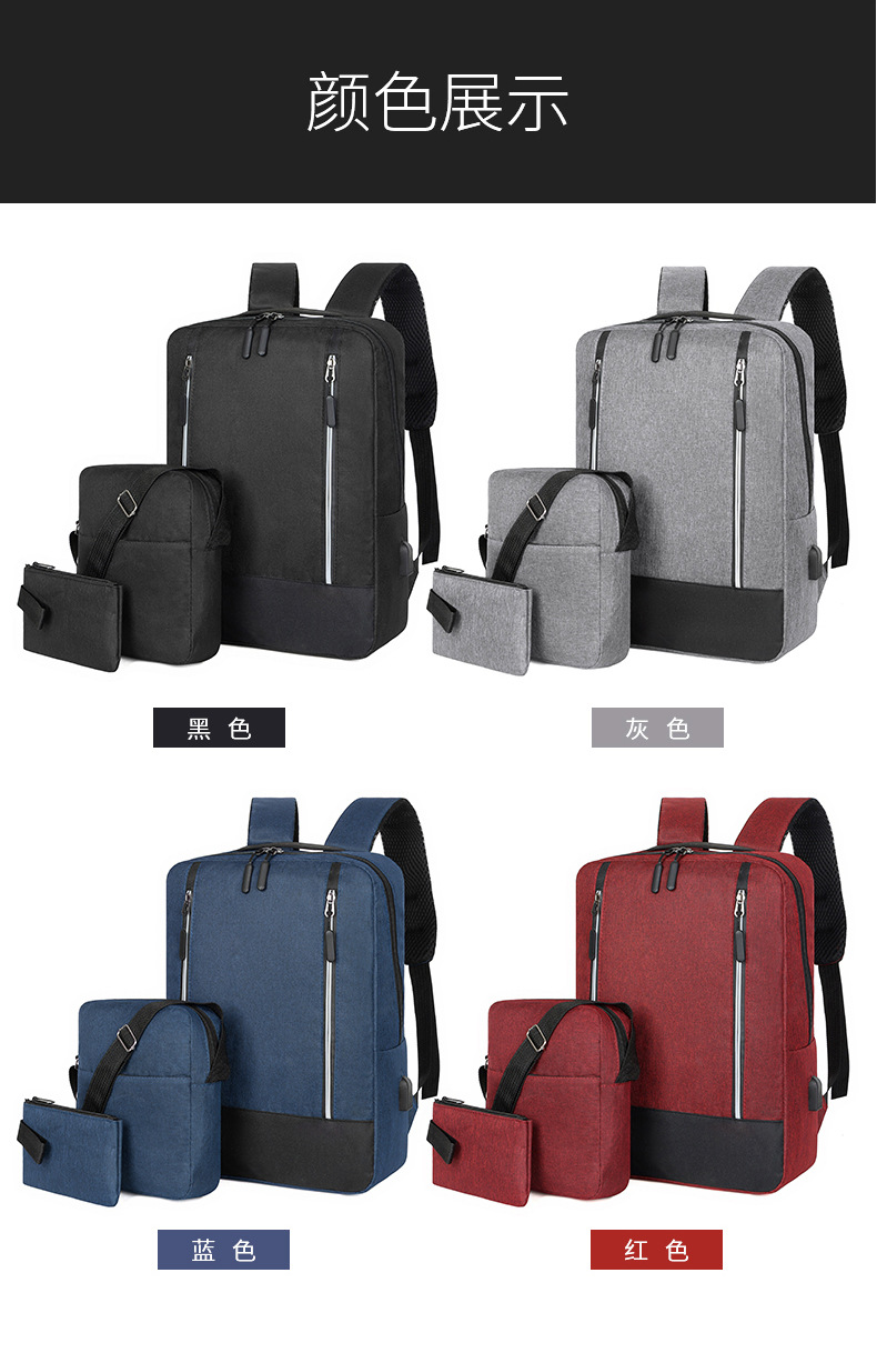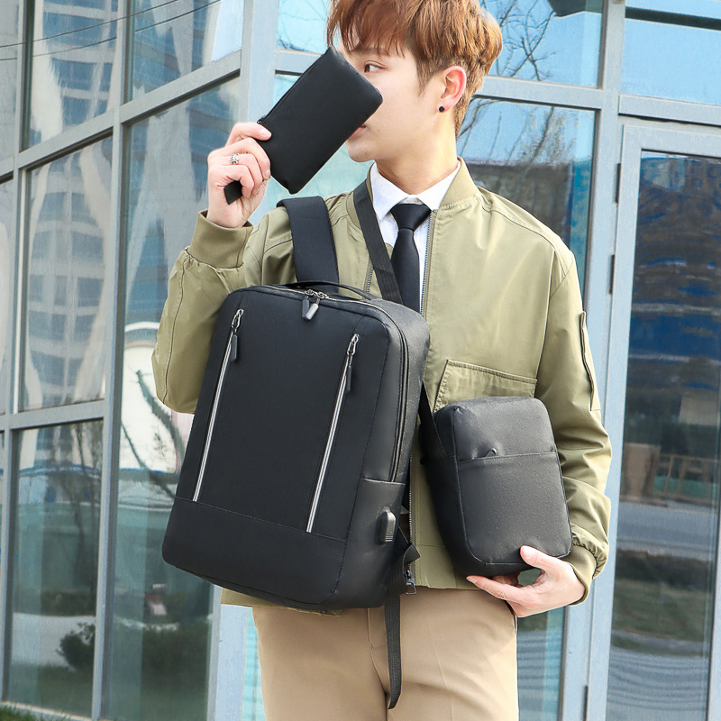 简约轻便商务背包三件套潮流百搭大容量男士双肩包大学生休闲书包