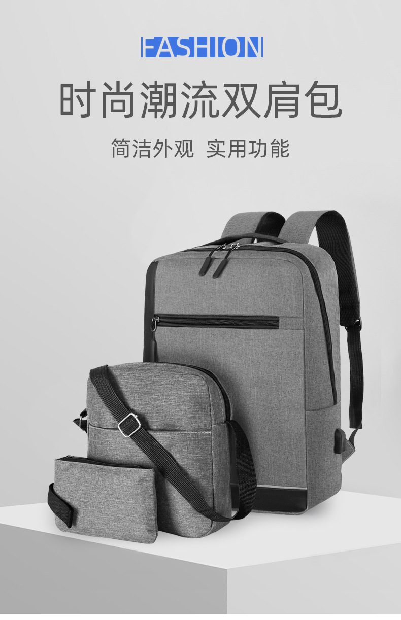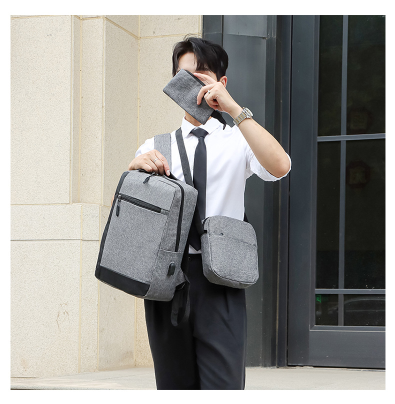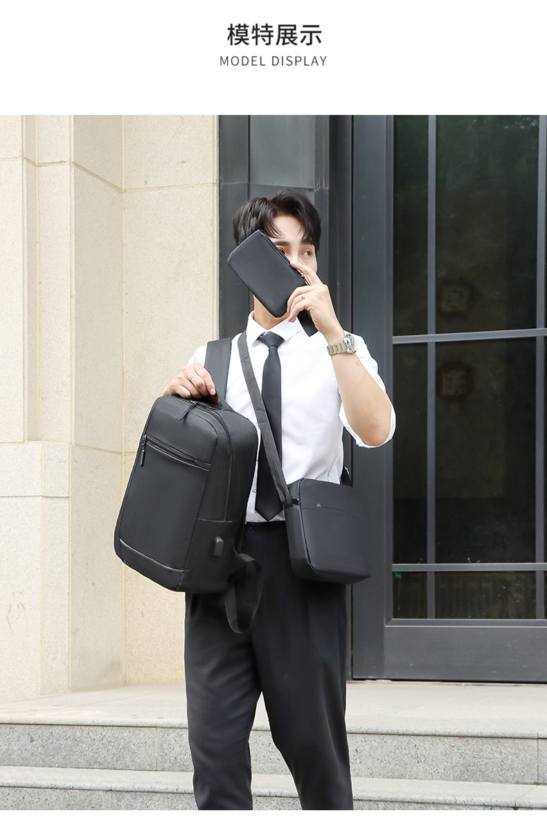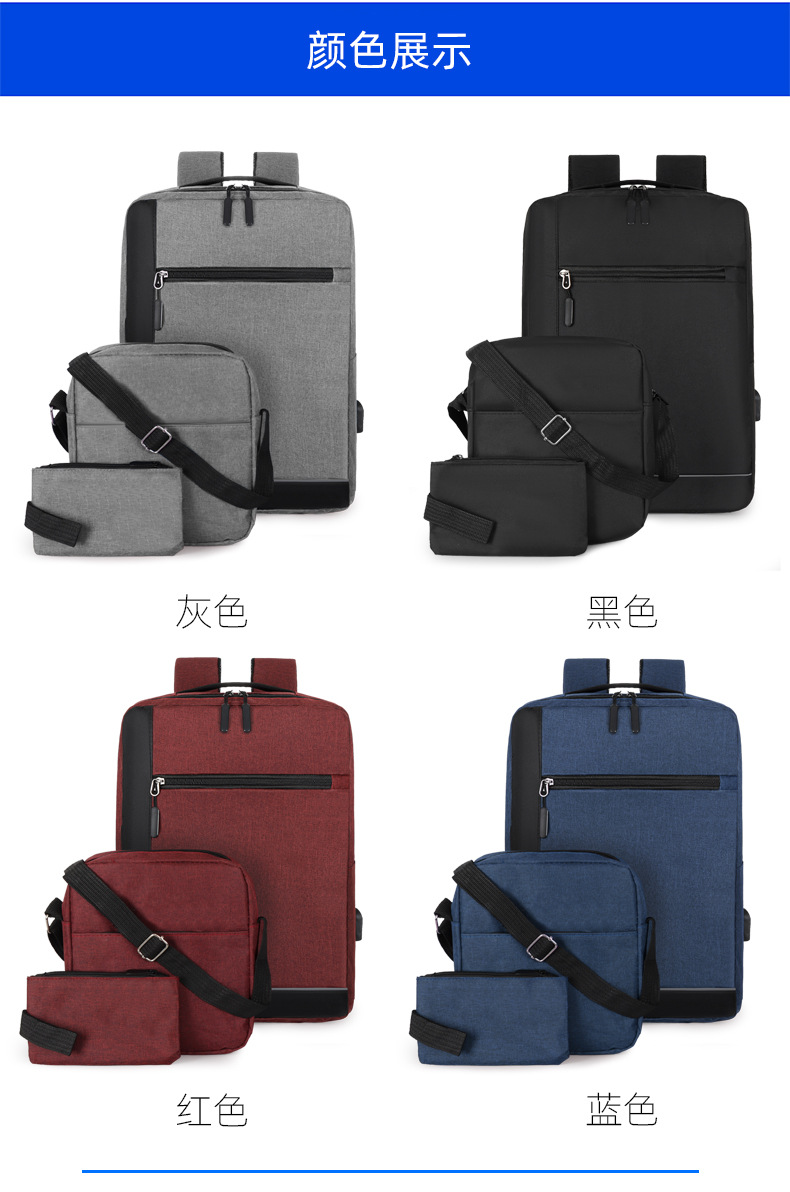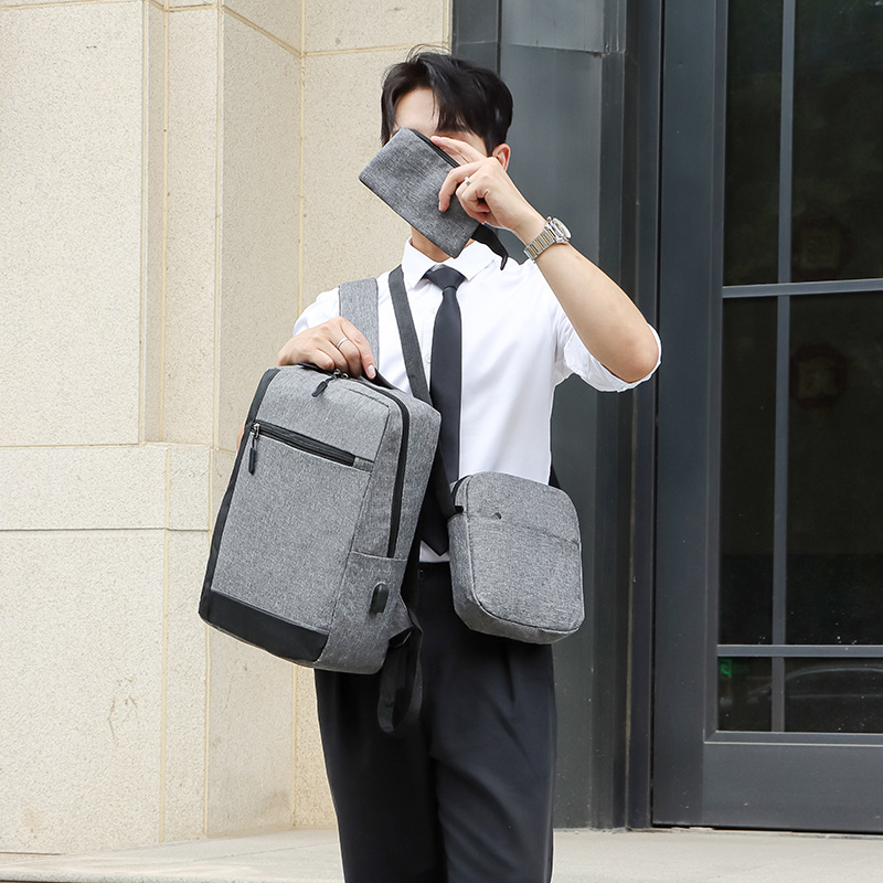 厂家新款牛津布双肩包商务出差电脑手提包USB休闲男士背包三件套