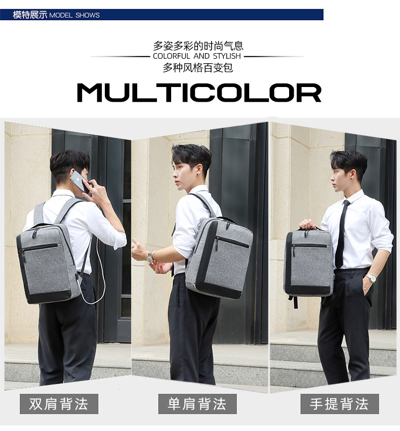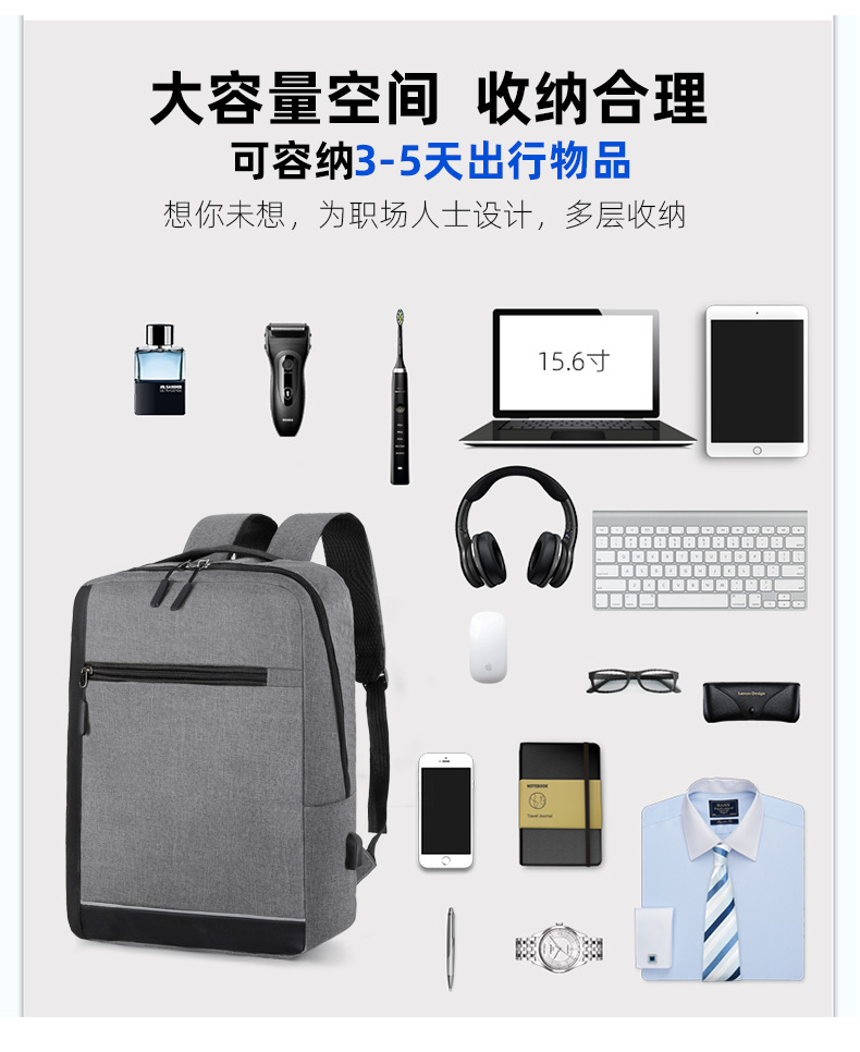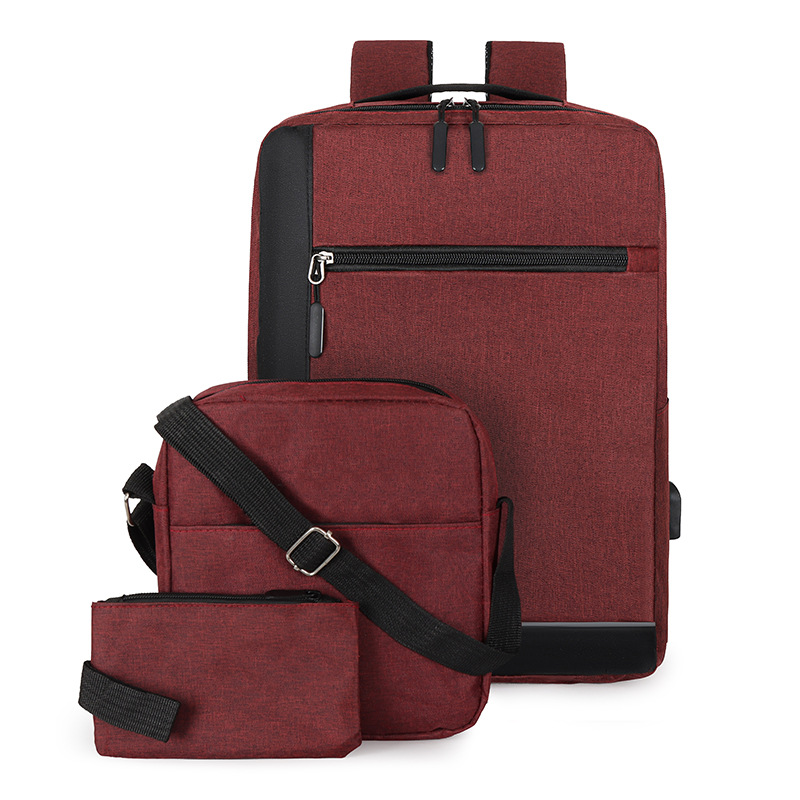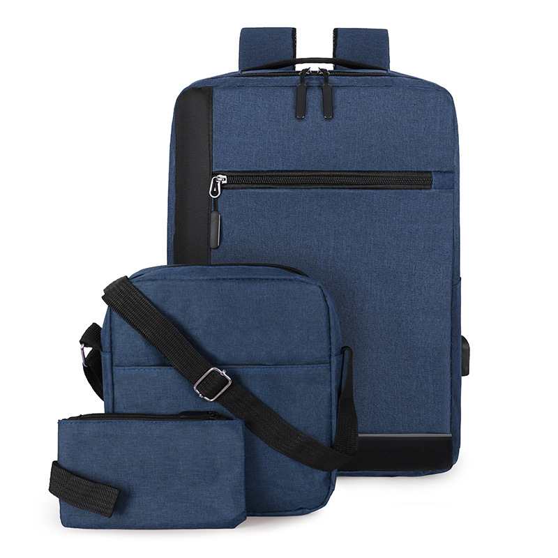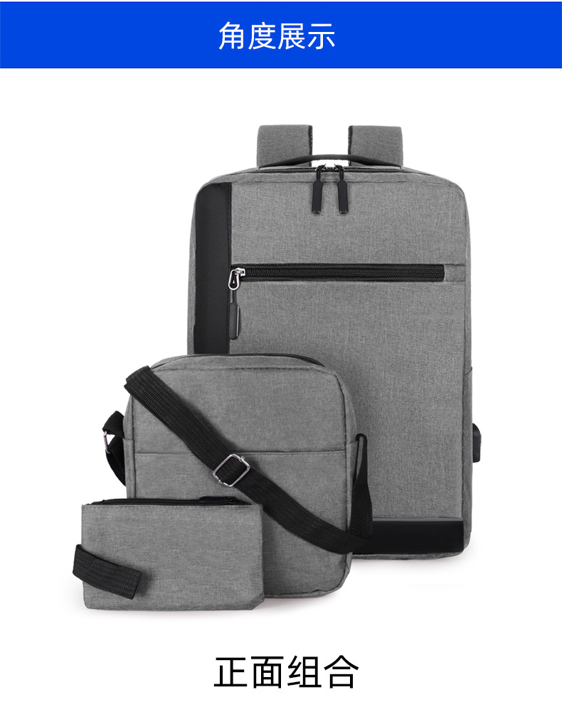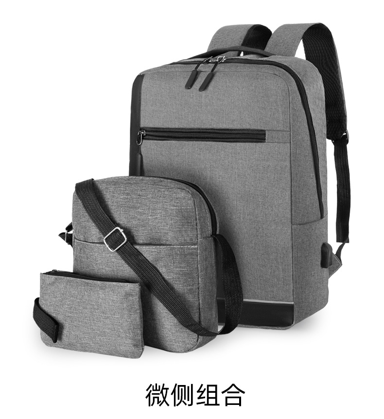 厂家新款牛津布双肩包商务出差电脑手提包USB休闲男士背包三件套