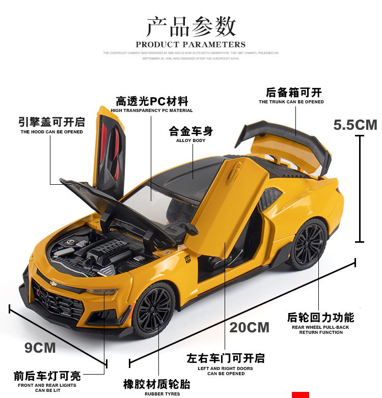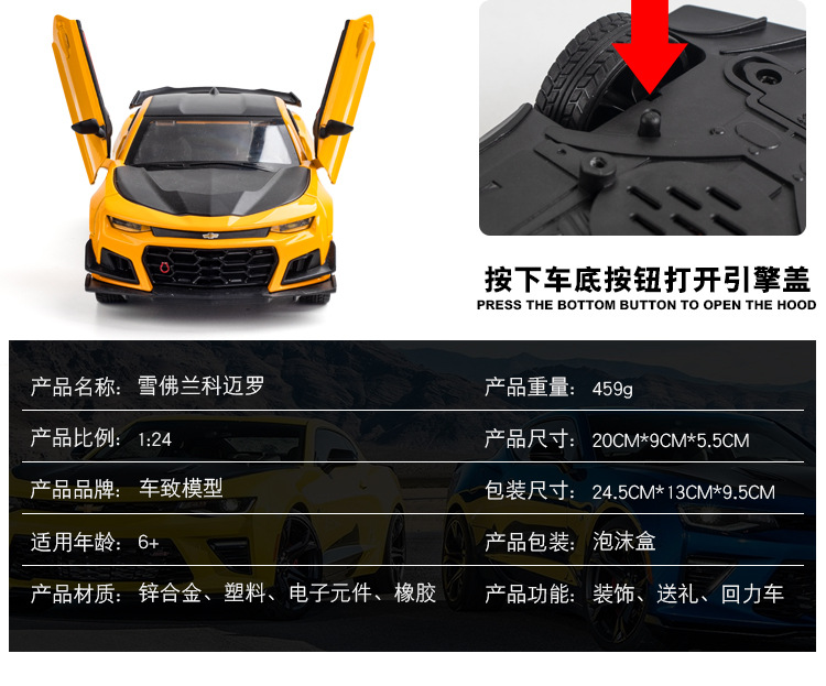 1:24雪佛兰科迈罗 大黄蜂系列男合金车模孩玩具车模礼物限量款
