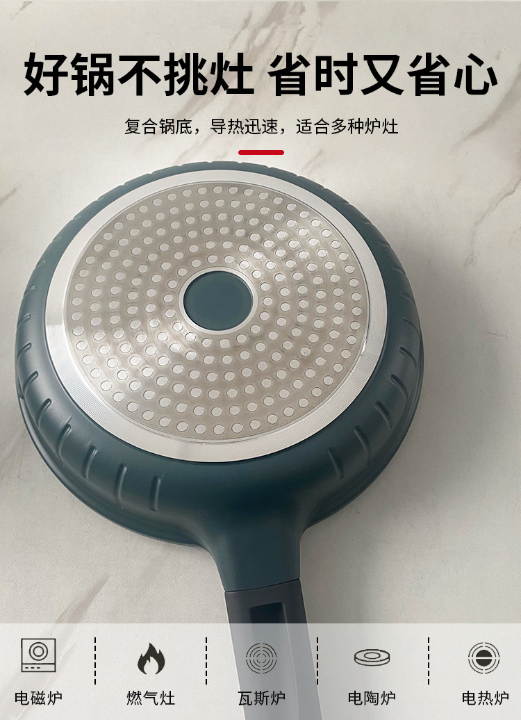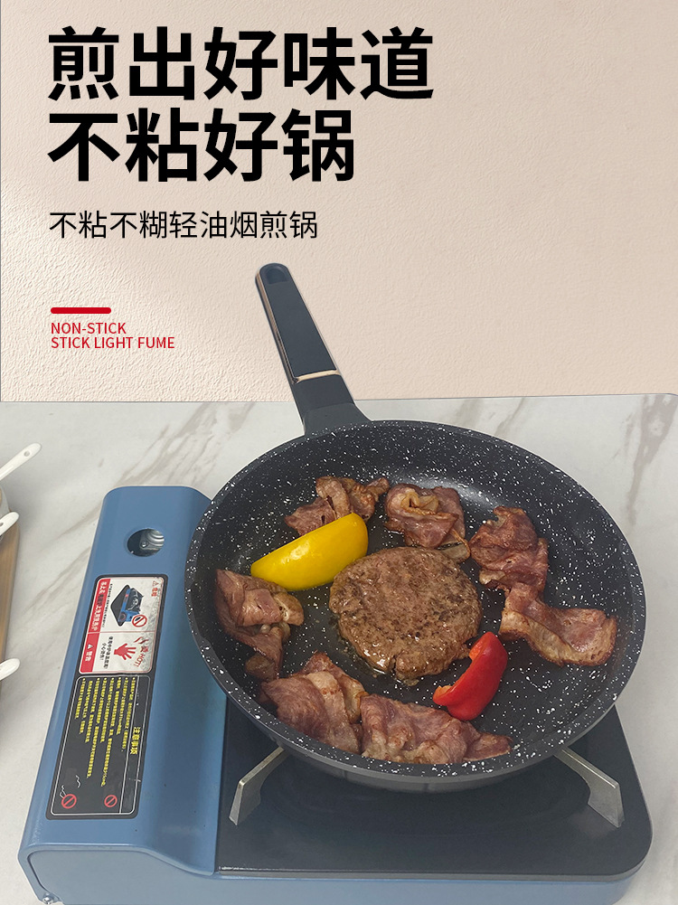 麦饭石平底锅不粘锅煎蛋锅烙饼锅煎饼锅燃气灶适用家用牛排煎锅