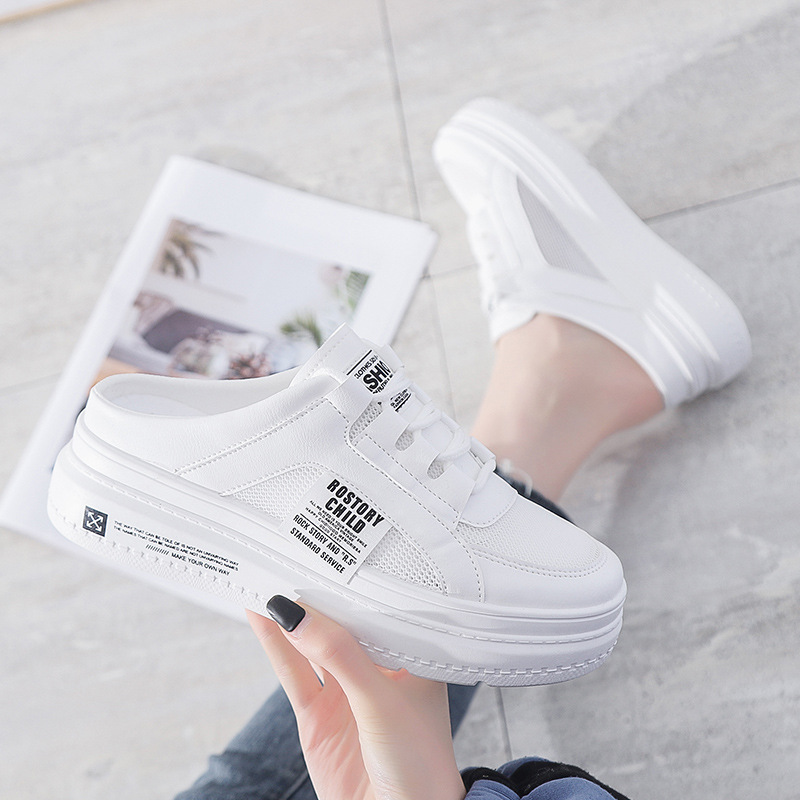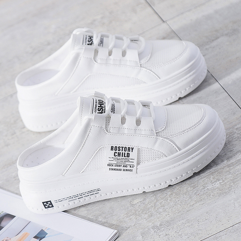 跨境包头半拖鞋女2025新款夏季网面懒人一脚蹬厚底女款外穿 1963