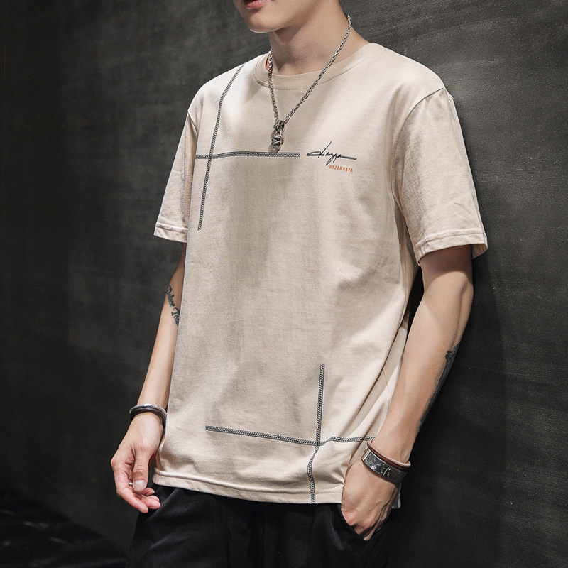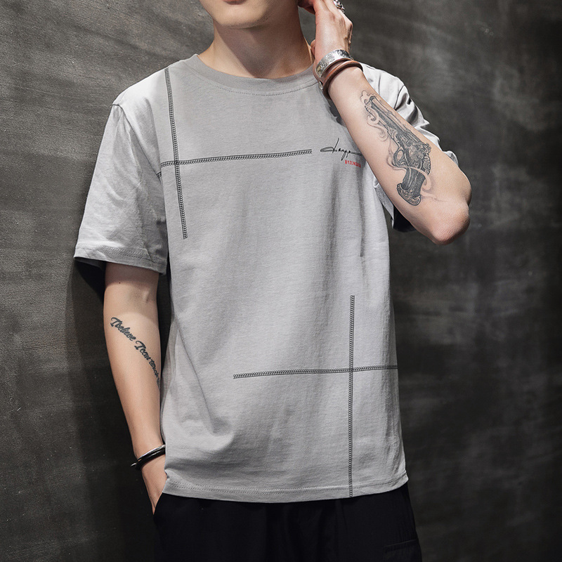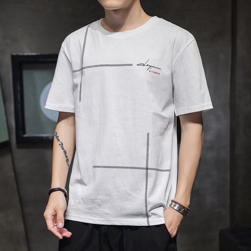 纯棉短袖男士t恤夏季2023新款潮牌潮流圆领五分薄款半袖体恤上衣