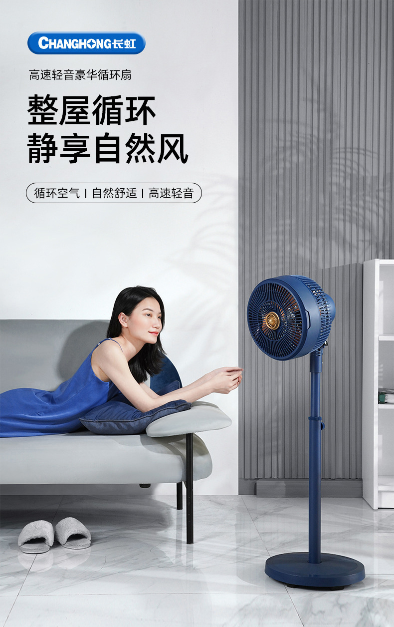 长虹循环扇家用空气循环风扇立式摇头低音节能落地扇批发电风扇