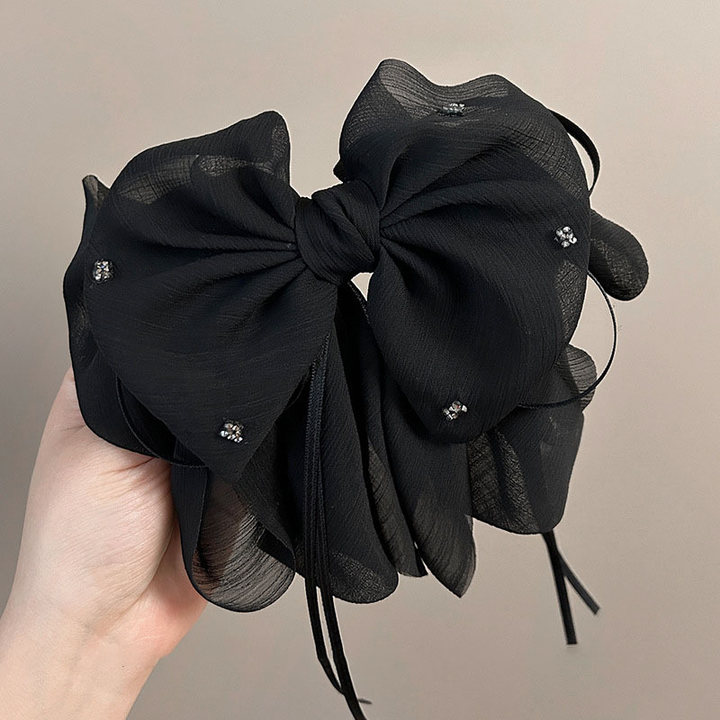 large bow hair accessories high-grade ponytail gap former red and black ribbon hairpin female back head grip shark clip