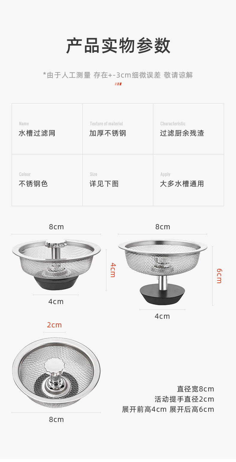 厨房水槽过滤网洗碗槽洗菜水池垃圾下水道防堵不锈钢漏网大号通用