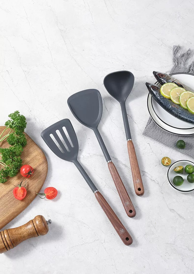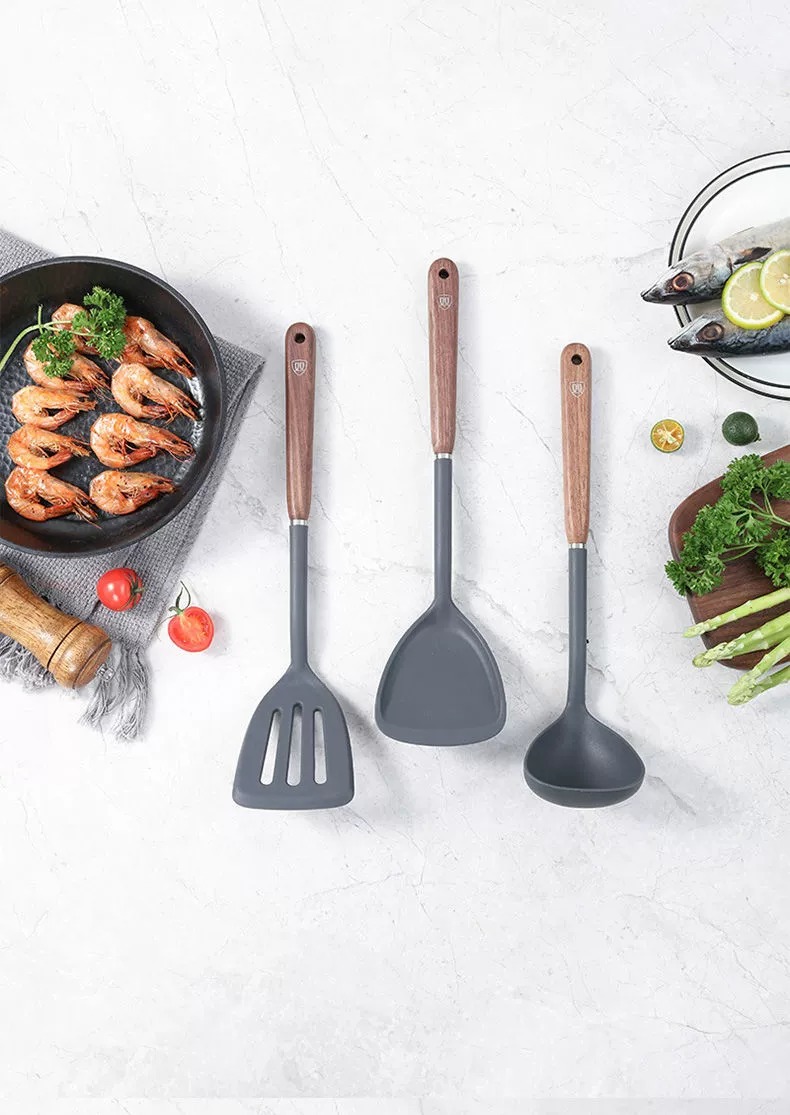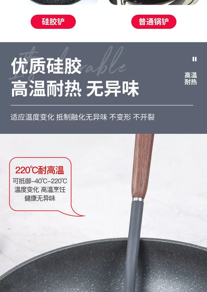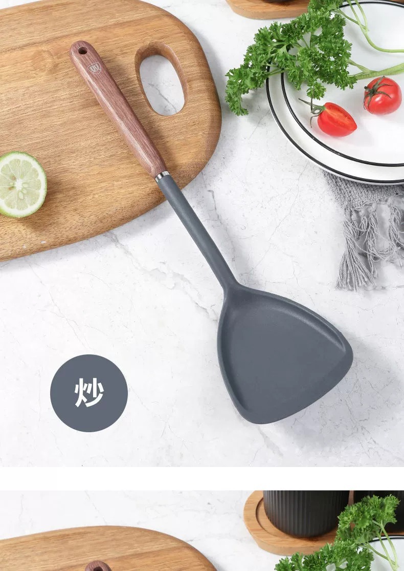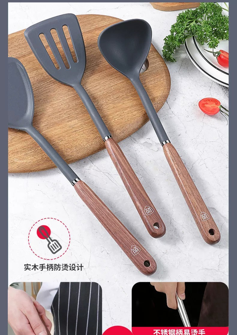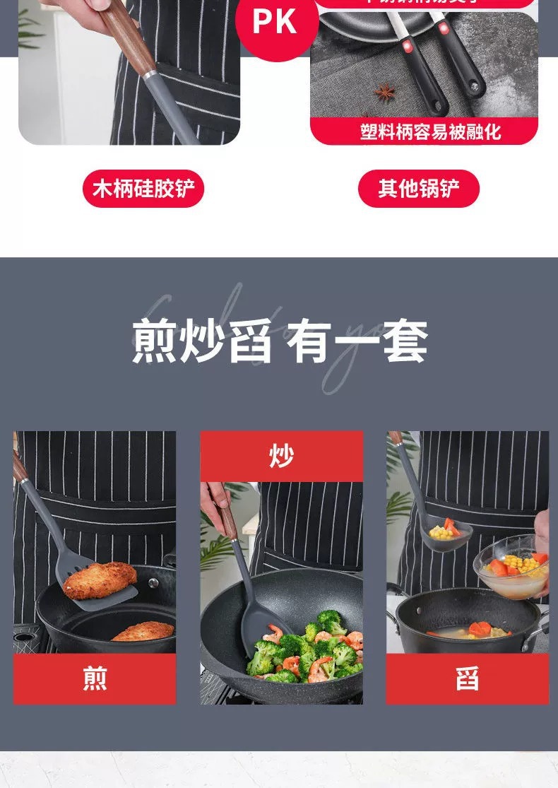双枪硅胶锅铲不粘锅专用炒菜铲汤勺家用食品级耐高温厨具套装批发