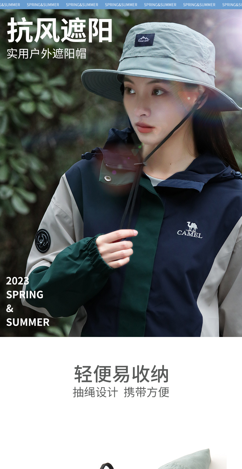 日系简约户外防晒遮阳帽露营登山大帽檐防紫外线速干渔夫帽太阳帽