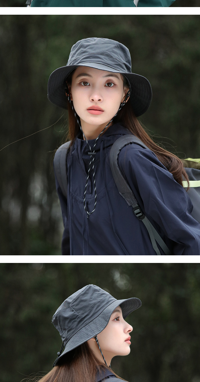 日系纯色渔夫帽男女款速干遮阳帽可收纳户外太阳登山帽折叠防晒帽