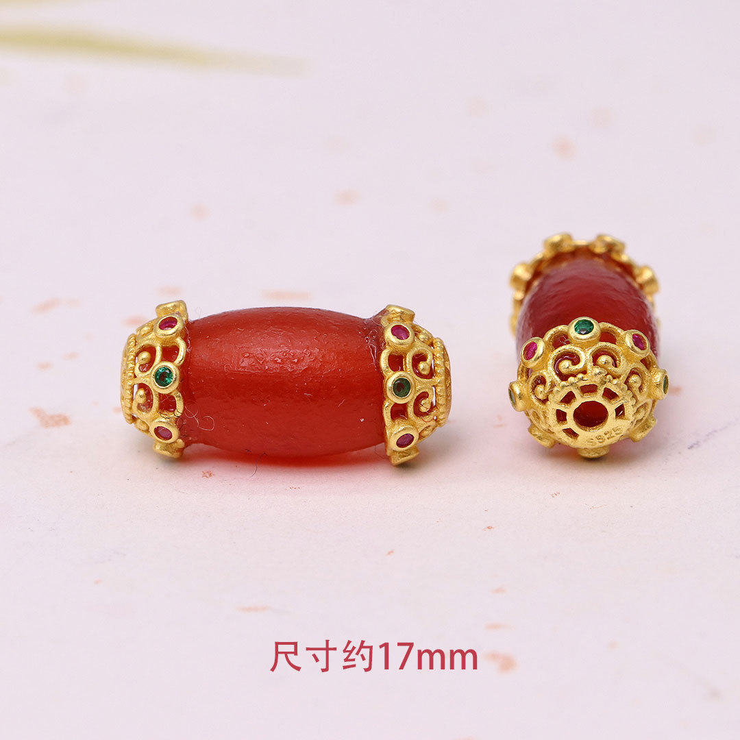 古法沙金扎基隔珠配件手链配饰祥云天珠南红桶珠手链配珠玛瑙配件
