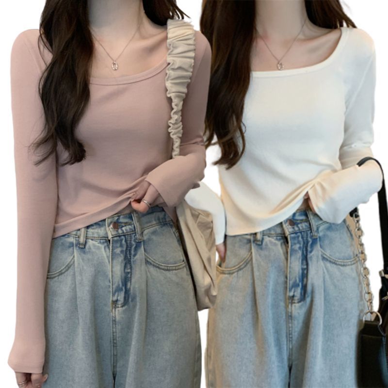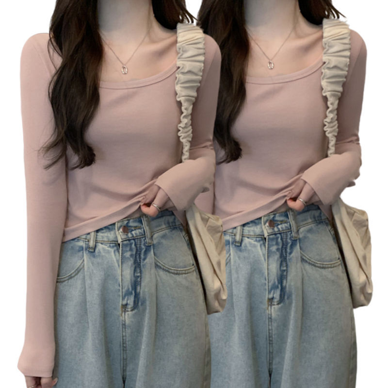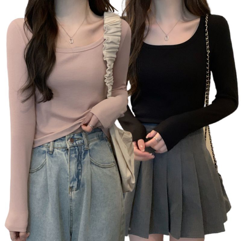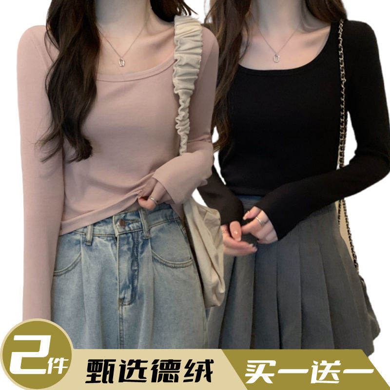 德绒双面打底衫女秋2023新款保暖内搭上衣修身显瘦外穿长袖t恤