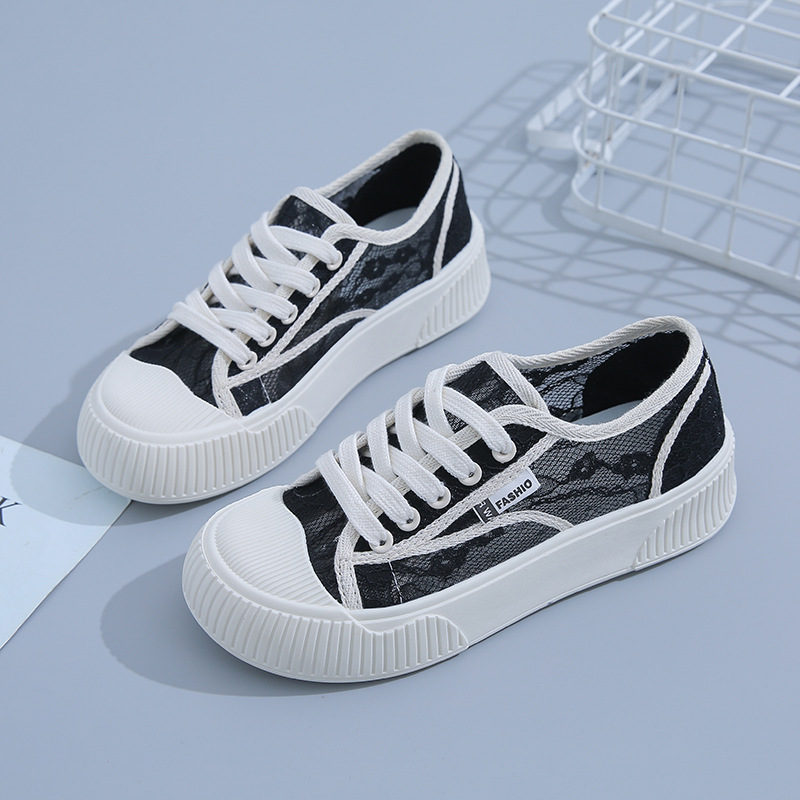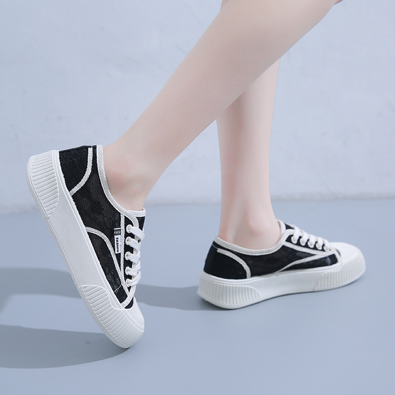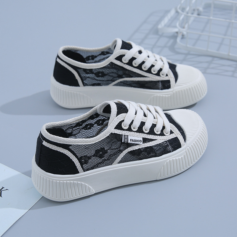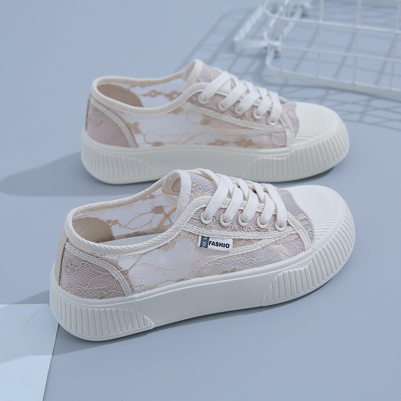 2025夏季韩版百搭网红小白鞋女ins潮休闲蕾丝厚底透网鞋女J-9902